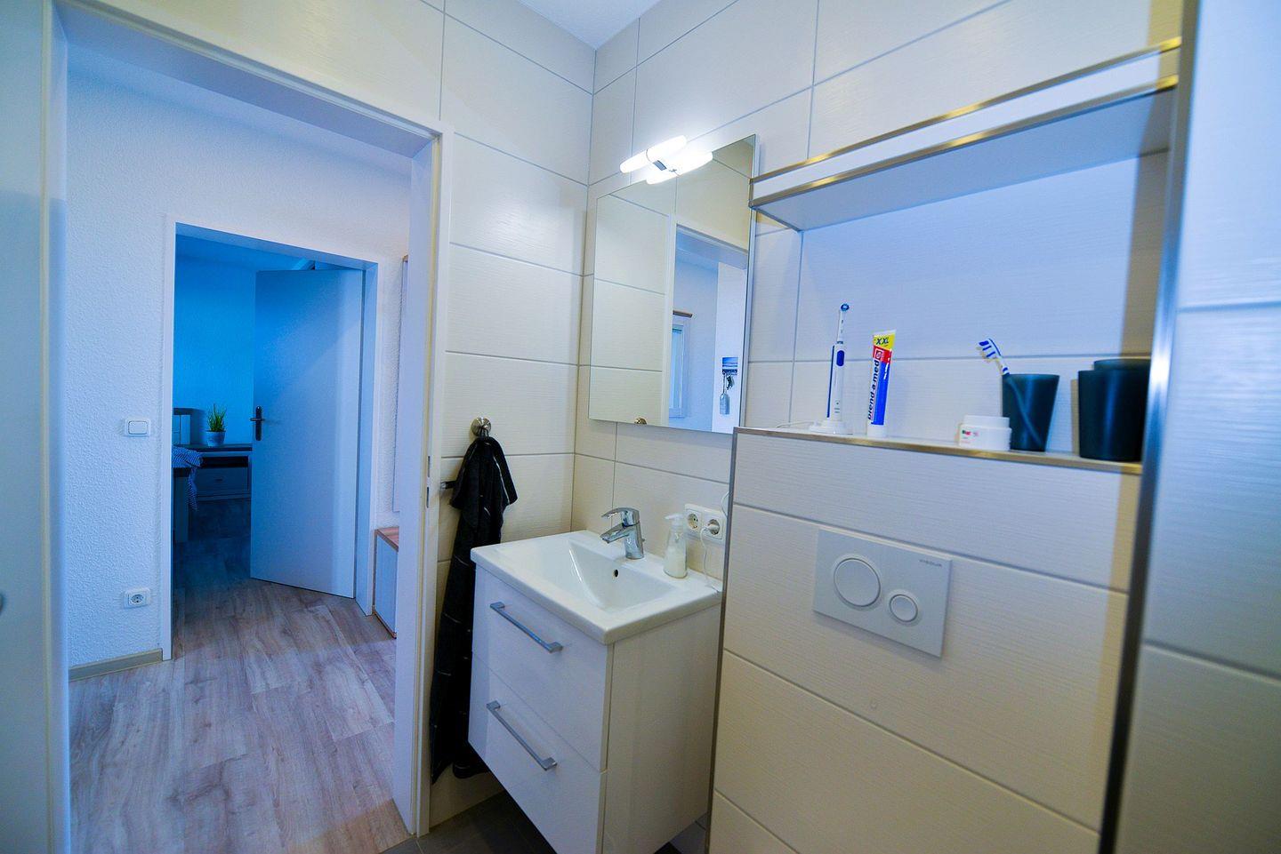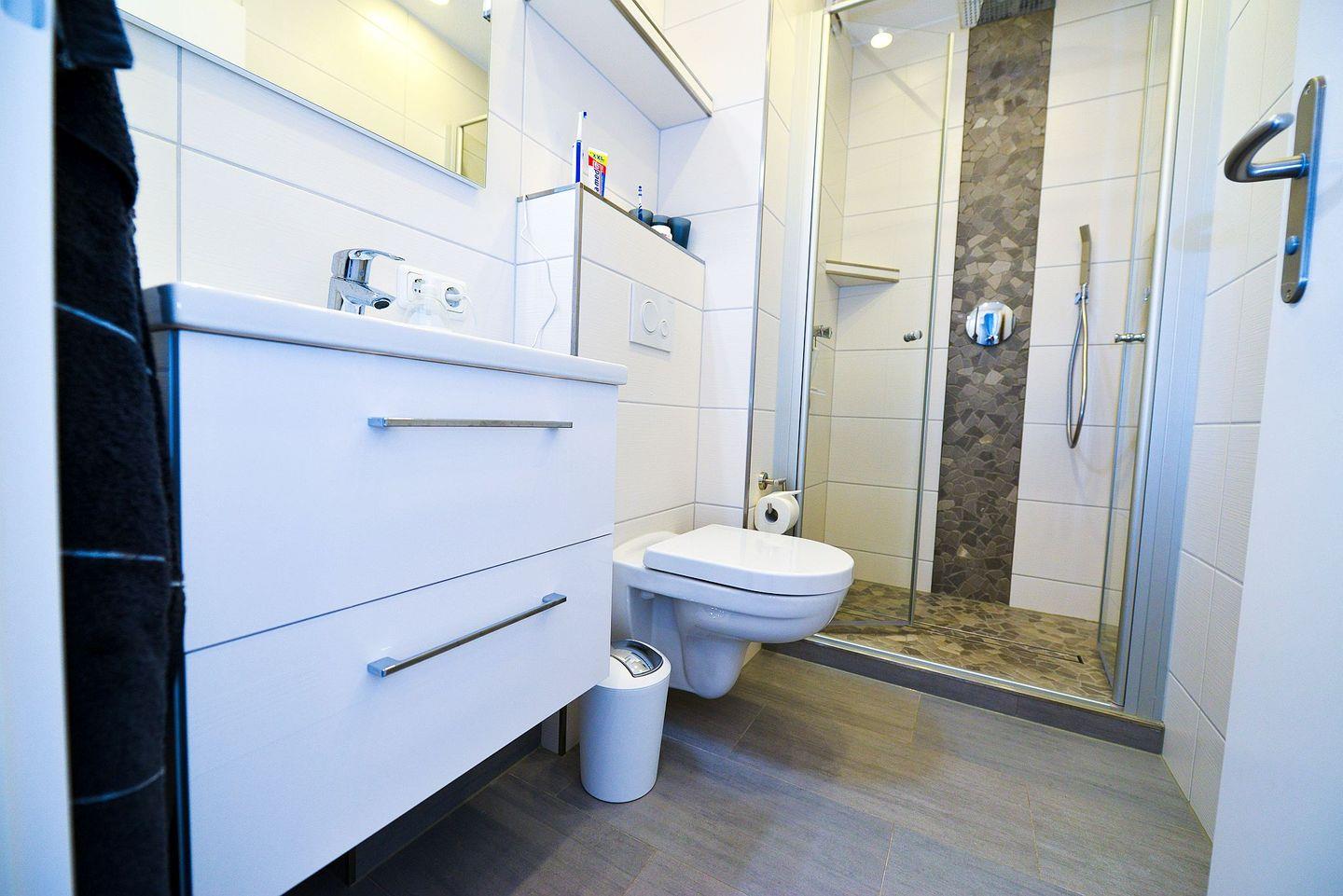Beginnen Sie Ihren Urlaubstag mit einer erholsamen und energiespendenden Dusche in dem schönen Bad, genießen Sie ein köstliches Frühstück am Esstisch vor der verglasten Fensterfront zum Öffnen mit Panoramameerblick und verbringen Sie anschließend einen wunderbaren Tag am Strand. So oder so ähnlich könnte der Beginn eines typischen Urlaubstags in dieser Traumferienwohnung verlaufen.