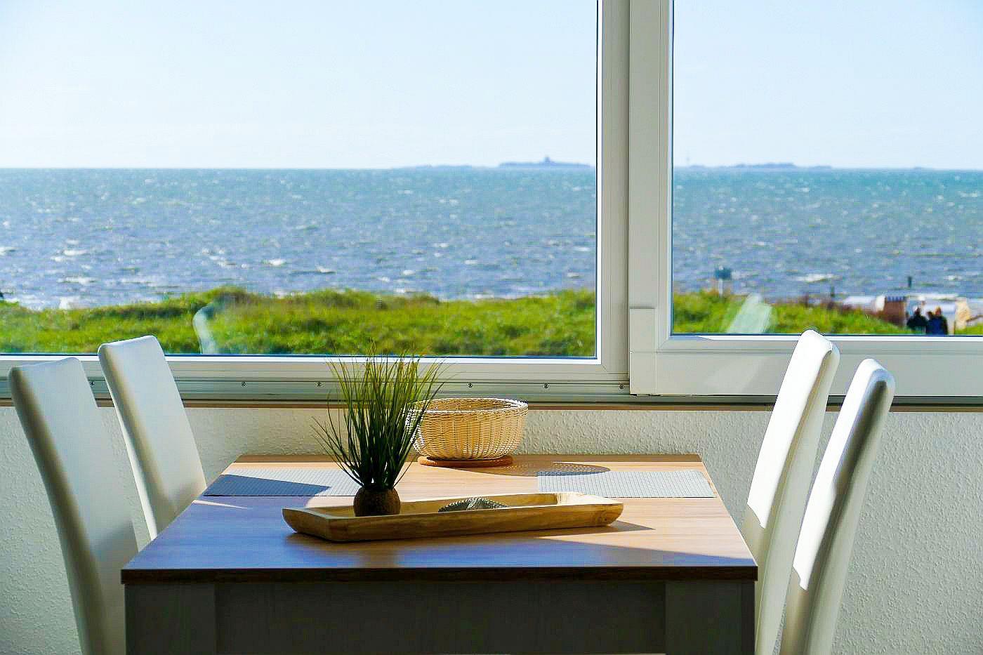 Beginnen Sie Ihren Urlaubstag mit einem Blick aus der verglasten Fensterfront zum Öffnen mit Panoramameerblick und verbringen Sie anschließend einen wunderbaren Tag am Strand. So oder so ähnlich könnte der Beginn eines typischen Urlaubstags in dieser Traumferienwohnung verlaufen.