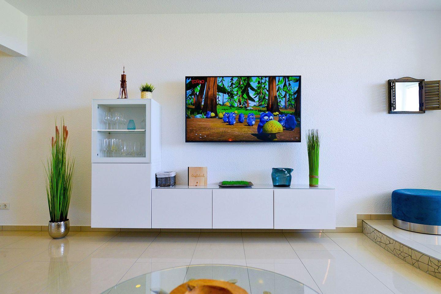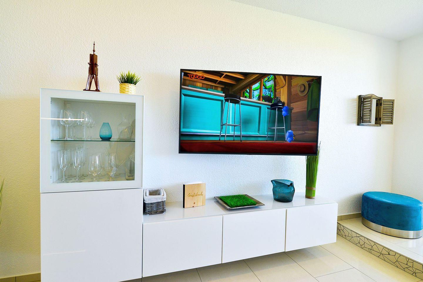 Das angenehme Wohlgefühl der Ferienwohnung wird durch die vollwertige und moderne Einrichtung unterstrichen. So ist von der vollausgestatteten Küchenzeile bis zum Fernseher alles gegeben, was man im Urlaub benötigt, um sich ganz dem Urlaub zu widmen. Die beiden Flatscreen TVs (einer davon 55 Zoll) und das kostenlose WLAN bieten Ihnen Multimedia Entertainment und garantieren kuschelige TV-Abende auf der Couch. Erholung und Wellness bieten nicht nur das im Haus integrierte Schwimmbad, sondern auch das neue Bad mit Regendusche und Radio.