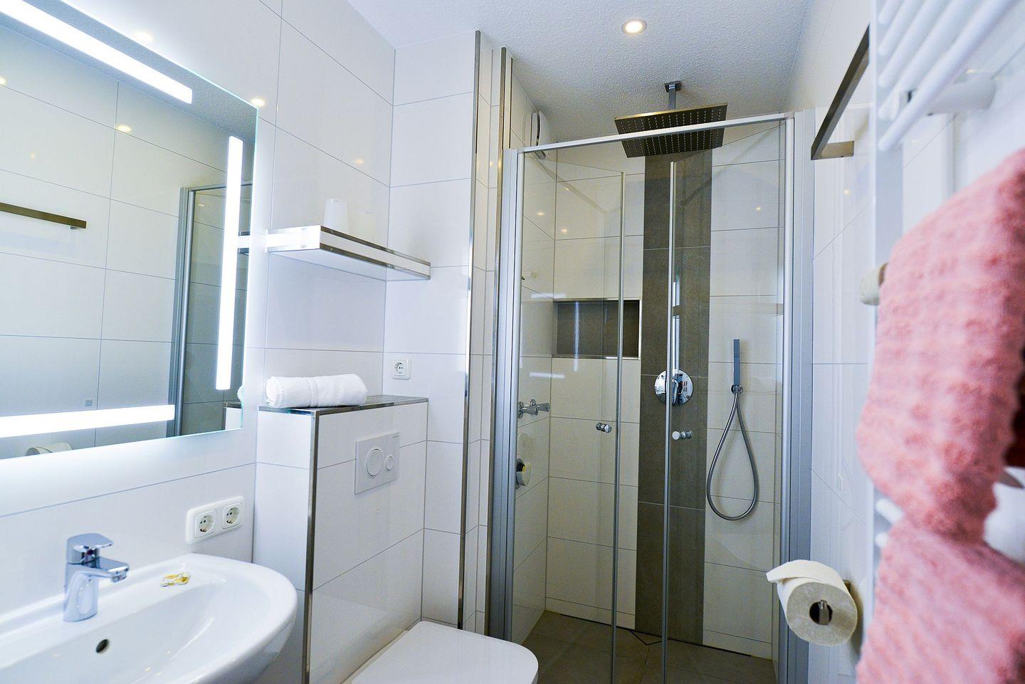 Erholung und Wellness bieten nicht nur das im Haus integriert Schwimmbad, sondern auch das neue Bad mit Regendusche.