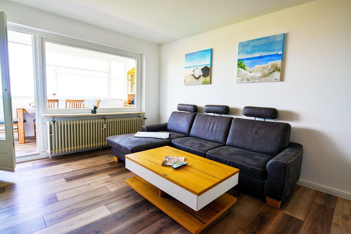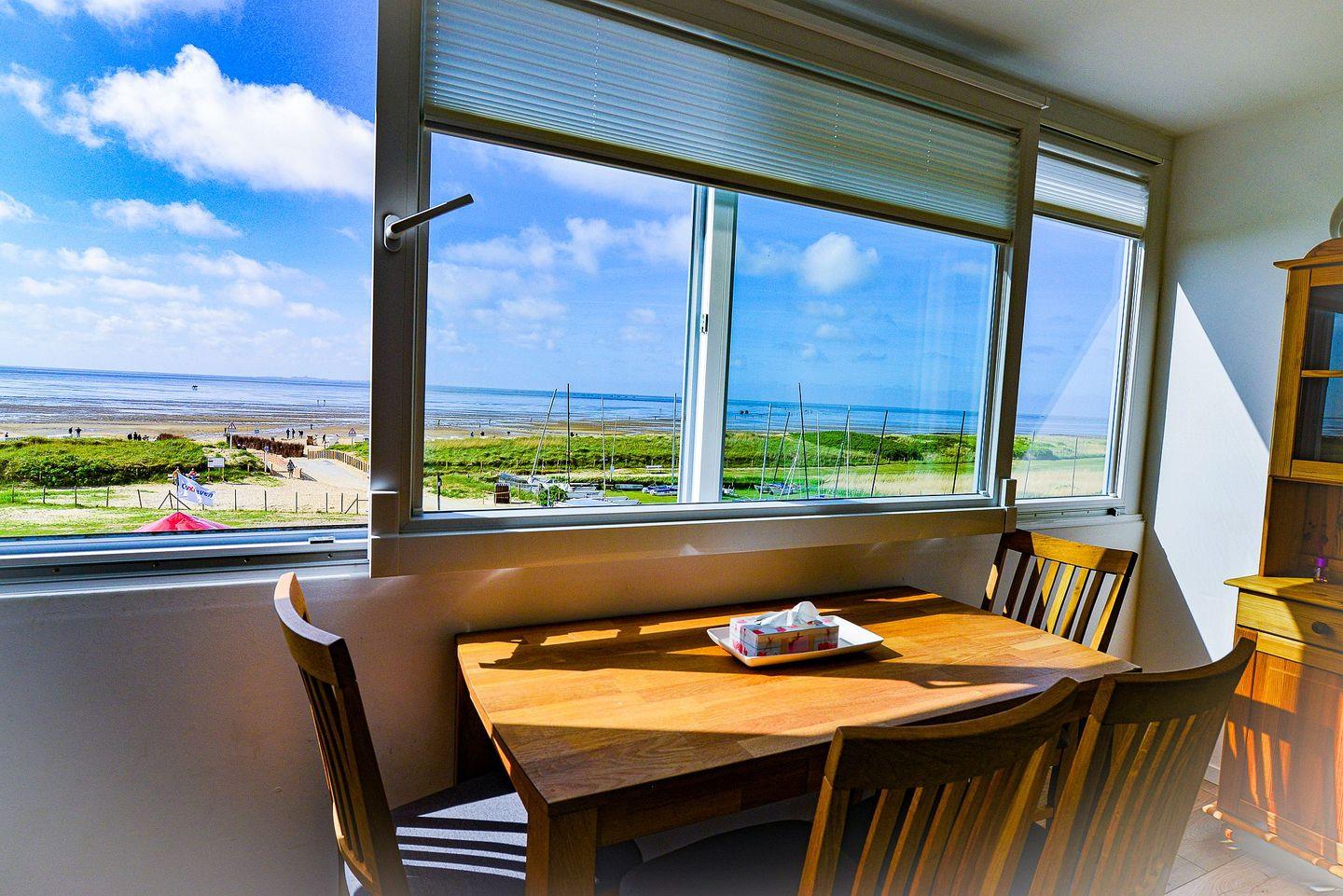 Der verglaste Balkon, der sich komplett öffnen lässt, sorgt dafür, dass Sie stets von bester Meeresluft umgeben sind und bietet Ihnen einen erstklassigen Panoramablick aufs Meer und die Insel Neuwerk.
