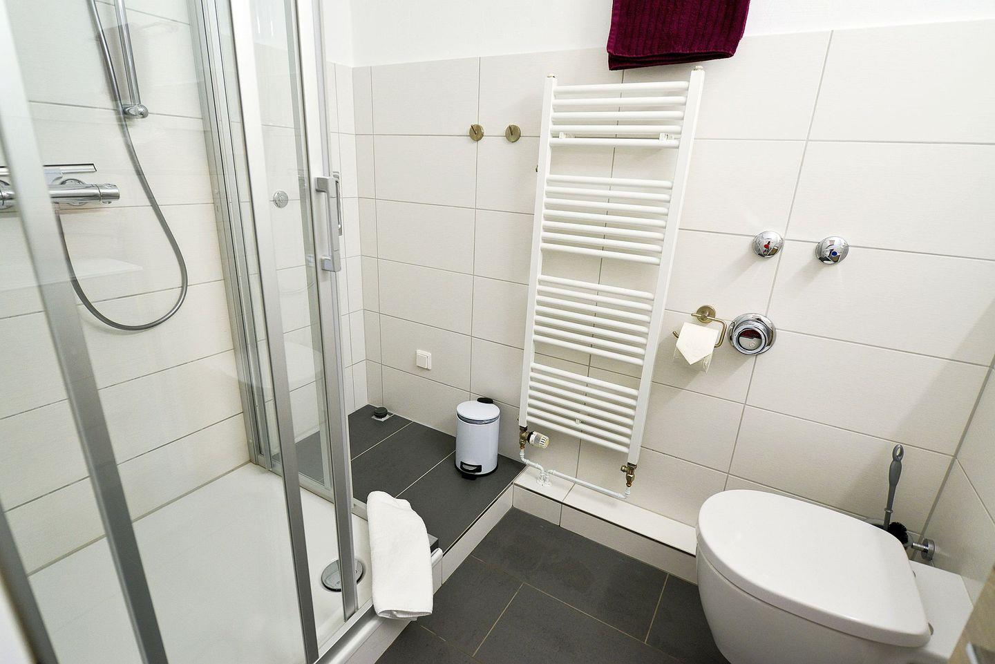 Erholung und Wellness bieten nicht nur das im Haus integrierte Schwimmbad, sondern auch das neue Bad mit Regendusche.