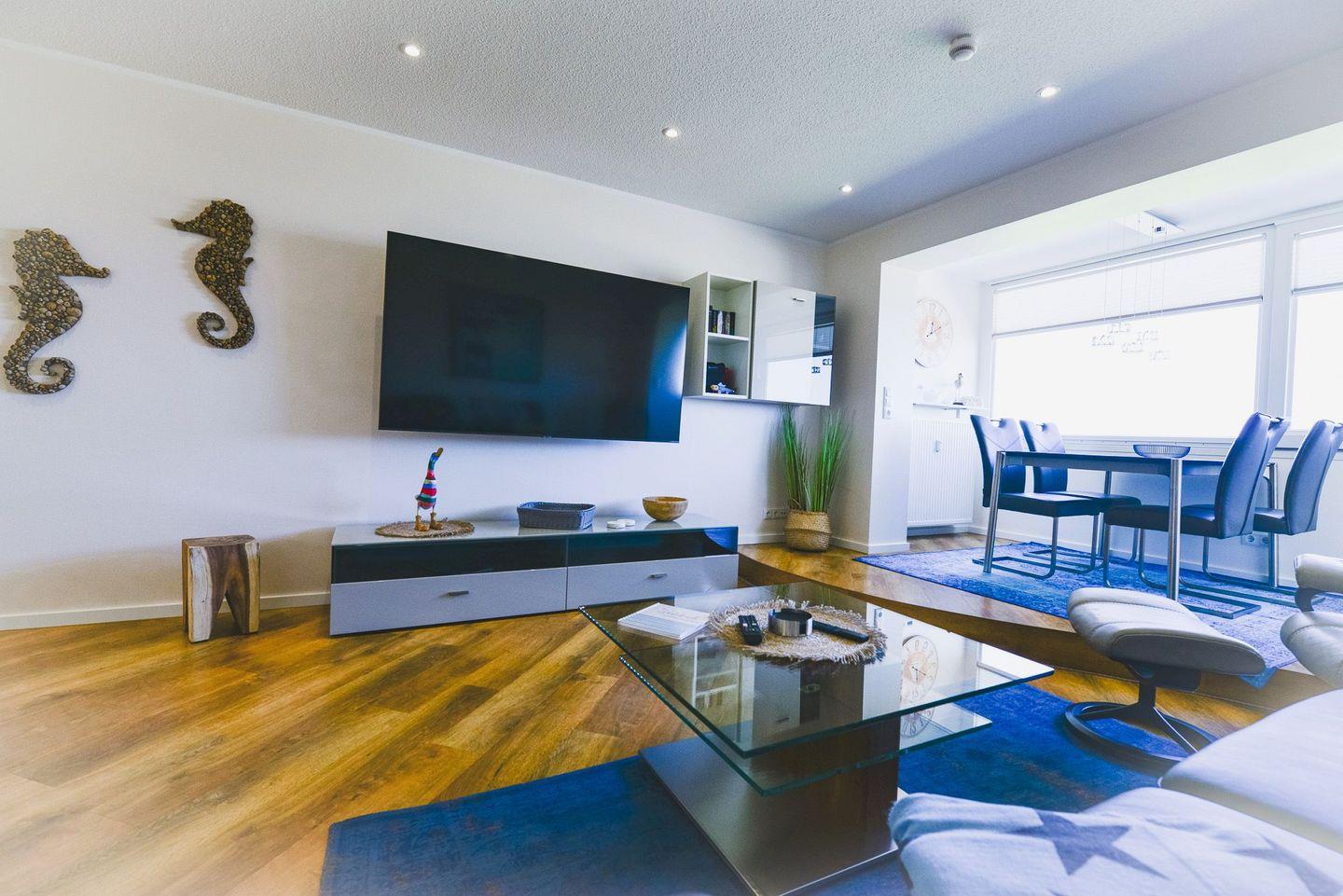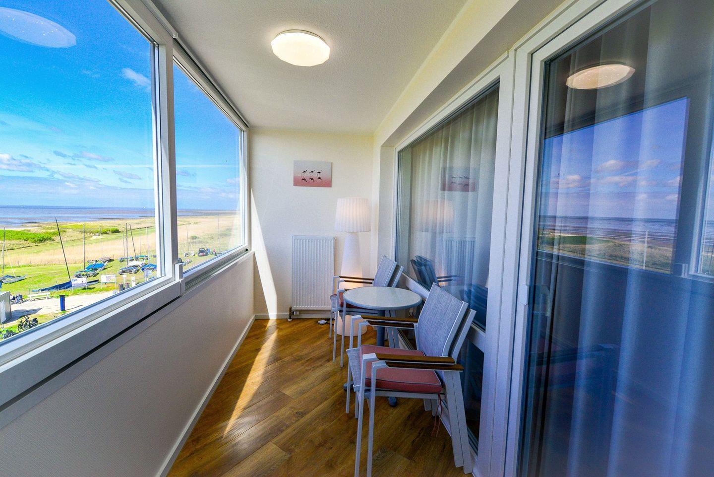 Die hochwertig ausgestattete Wohnung liegt ruhig und dennoch mitten im Geschehen – ideal für Paare, Alleinreisende oder Gäste, die Komfort und Natur schätzen. Vom verglasten, öffenbaren Balkon oder der großen Fensterfront genießen Sie einen freien Blick auf Ebbe, Flut und das maritime Leben vor Ihrer Tür.