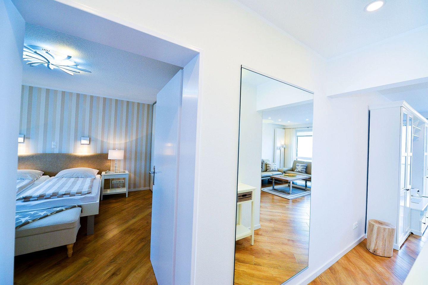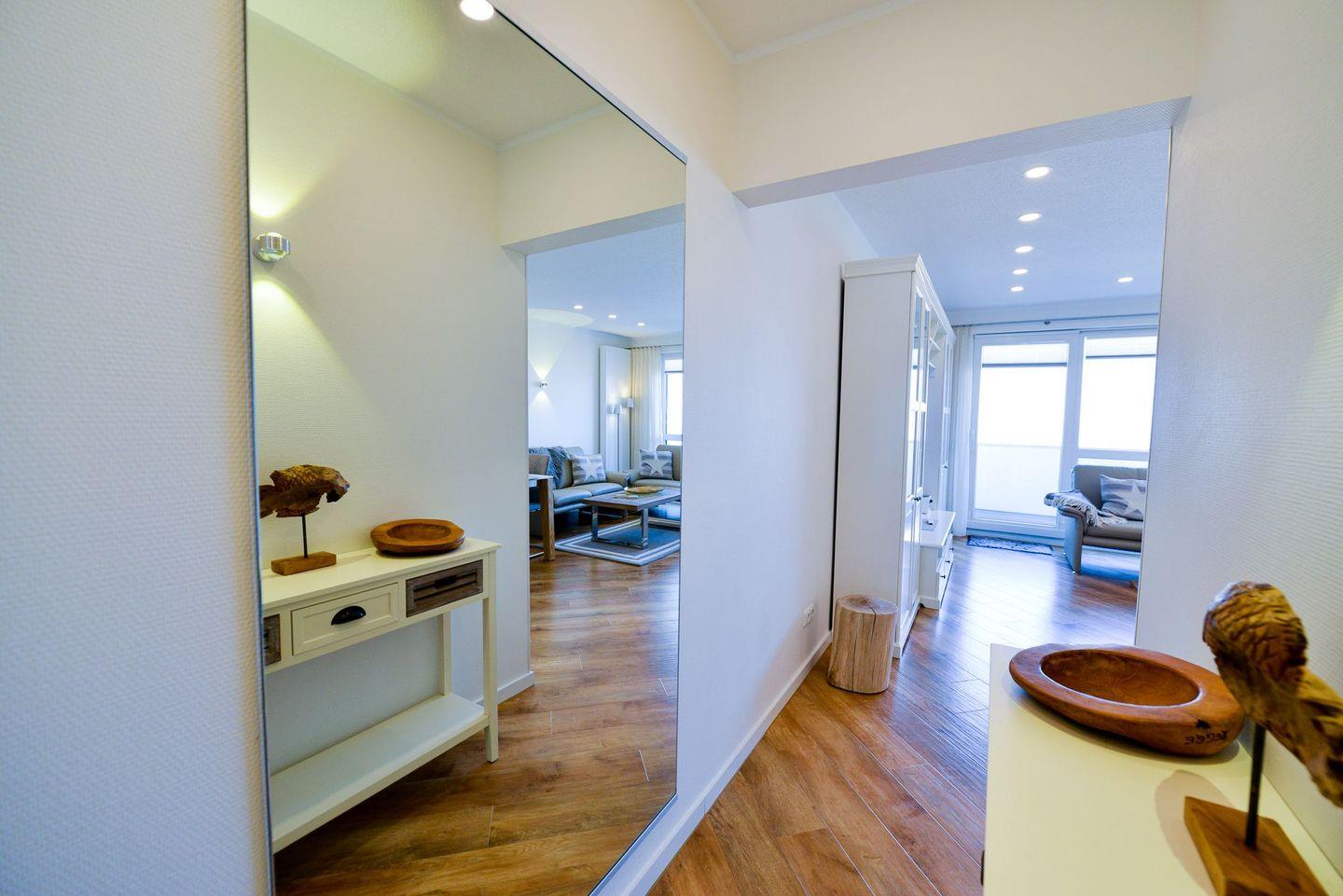 Genießen Sie Ihren Nordseeurlaub im Haus Am Sahlenburger Strand. Moderne Ausstattung, Küchenzeile mit Senseo, WLAN, TV und stilvolles Bad. Vom überdachten Westbalkon blicken Sie auf Meer, Neuwerk und Wattenmeer. Schwimmbad, Bäcker und Restaurant im Haus, Parkplatz inklusive. Strand, Watt und Wernerwald liegen direkt vor der Tür.