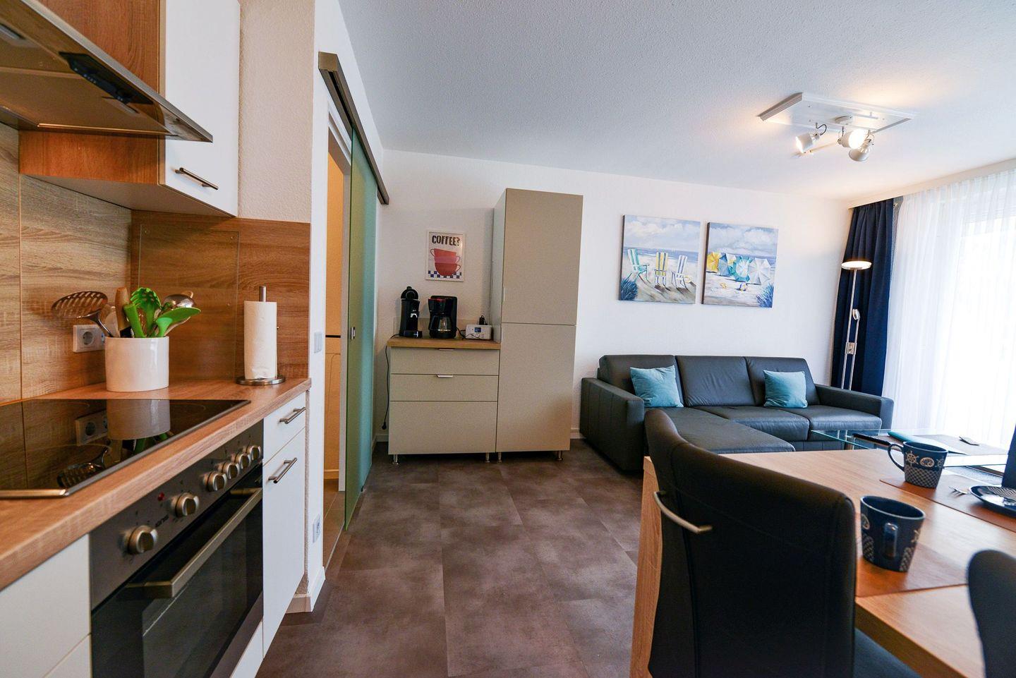 Moderne Ferienwohnung BA03 im Haus Baltic, Cuxhaven-Duhnen. Ca. 50?m vom Strand, auf zwei Etagen mit Wohnbereich, neuer Küche, Bad mit Dusche/WC und Terrasse. Vom Flur führt eine Treppe zu zwei separaten Schlafzimmern mit hochwertigen Betten. Abschließbare Terrasse mit Fahrradabstellmöglichkeit. WLAN, TV, Parkplatz Nr. 3 am Haus. Ruhige Sackgassenlage nahe Promenade, Ahoi-Bad, Restaurants und Einkauf – ideal für Paare oder Familien. Nichtraucher, haustierfrei.