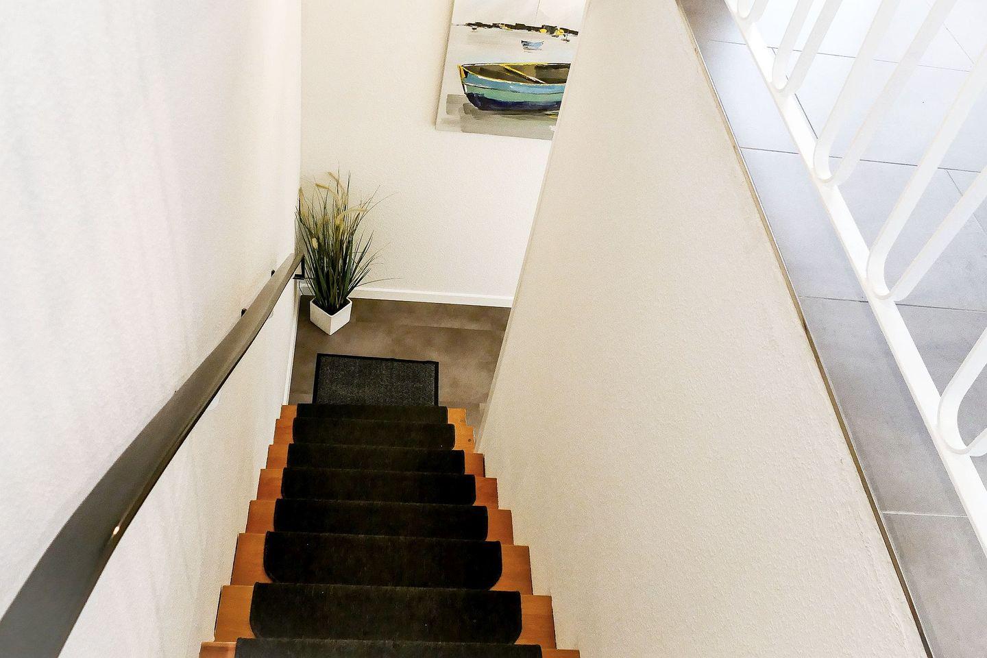 Die ca. 55?m² große Nichtraucherwohnung auf zwei Etagen bietet Platz für bis zu vier Personen. Im oberen Bereich befindet sich der offene Wohn- und Essbereich mit vollständig ausgestatteter Küchenzeile, Flatscreen-TV und kostenfreiem WLAN. Vom Wohnzimmer aus gelangen Sie direkt auf eine abschließbare Westterrasse, auf der auch Fahrräder gerne sicher abgestellt werden können.
