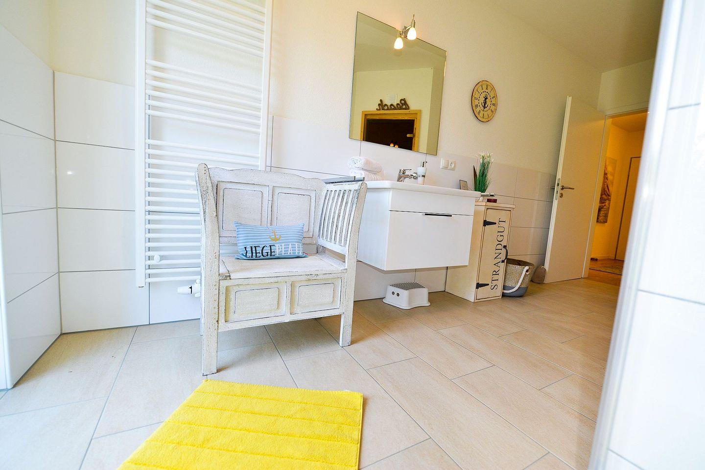 Willkommen im Heimathafen HG23, Ihrer stilvollen Ferienwohnung an der Nordseeküste. Auf 90 m² Wohnfläche in der 3. Etage erwartet Sie ein modernes Zuhause mit maritimem Flair, durchdachter Ausstattung und liebevoll ausgewählter Dekoration. Jeder Raum wurde mit viel Sorgfalt gestaltet, um Komfort, Stil und Gemütlichkeit harmonisch zu verbinden. Der Balkon mit seitlichem Meerblick lädt zum Entspannen ein, während das Tageslichtbad mit eigener kostenfreier Sauna für erholsame Stunden sorgt. Rückengerechte Lattoflex-Betten (AGR-zertifiziert) bieten besten Schlafkomfort. Drei HDTV-Geräte, Stereoanlage mit Bluetooth, WLAN, eine voll ausgestattete Küche, Gäste-WC, Waschmaschine und ein Tiefgaragenstellplatz stehen bereit. Nur 250 Meter vom Strand entfernt, umgeben von Wald, Heide und Meer, erleben Sie hier einen Ort voller Ruhe, Wärme und Nordseeflair. Auch Ihre kleine Fellnase ist willkommen.