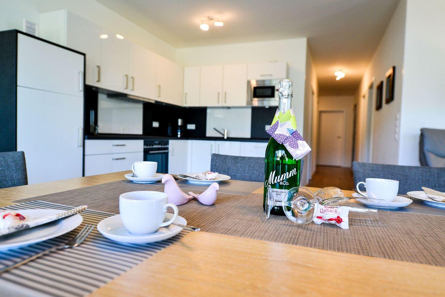 Erleben Sie einen unvergesslichen Nordseeurlaub in diesem exklusiven 118 m² großen Penthouse im Haus Hohe Geest, auch als Quartier Hohe Geest bekannt, in Cuxhaven-Sahlenburg. Im 4. Stock erwartet Sie eine moderne Ferienwohnung mit viel Licht, hochwertiger Ausstattung und klarer Einrichtung. Die 80 m² große West-Dachterrasse bietet einen Blick auf das Meer – ideal, um den Tag bei einem Sonnenuntergang ausklingen zu lassen. Das Tageslichtbad mit eigener kostenfreier Sauna, die Fußbodenheizung und drei Smart-TVs sorgen für besten Komfort. Eine voll ausgestattete Küche, Gäste-WC, Waschmaschine, Trockner, Tiefgaragenstellplatz und Aufzug machen den Aufenthalt angenehm und unkompliziert. Der Strand ist nur 250 Meter entfernt, Bäcker und Restaurants liegen in der Nähe. Hier verbinden sich Komfort, Ruhe und Nordseeluft zu einem Urlaub, an den man sich gerne erinnert.