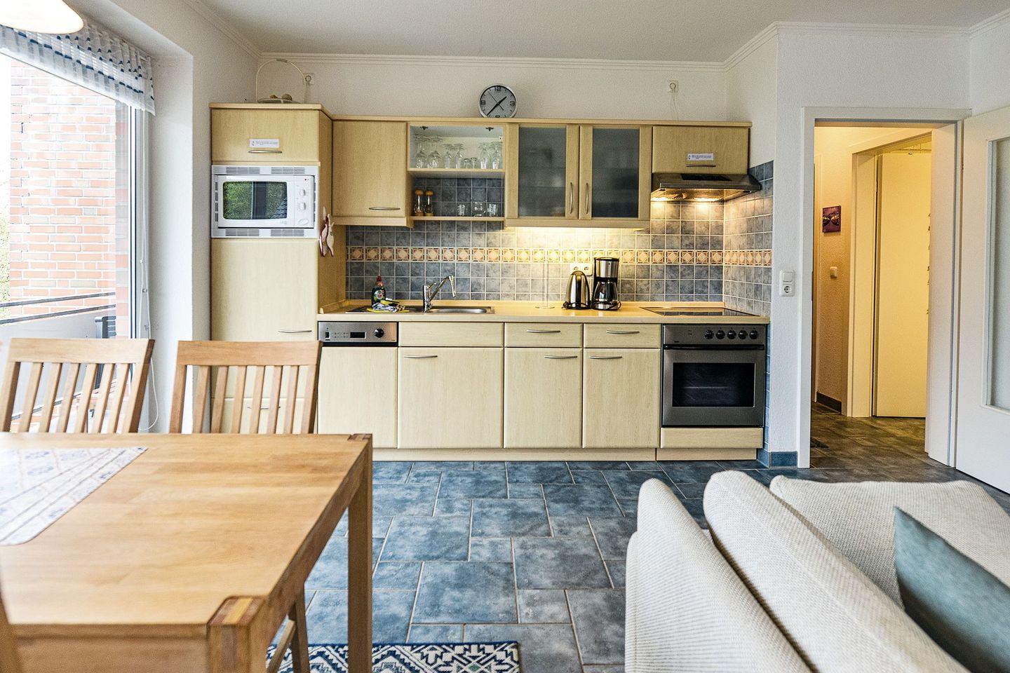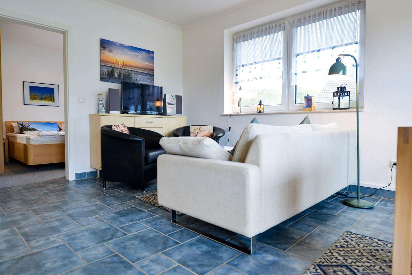 In dieser ca. 45 m² großen Ferienwohnung im 2. Stock des Hauses Seewind finden bis zu vier Personen ausreichend Platz für eine angenehme Auszeit an der Küste. Die Wohnung ist gemütlich eingerichtet und bietet eine entspannte Atmosphäre – ideal, um sich nach einem Tag am Meer zu erholen.