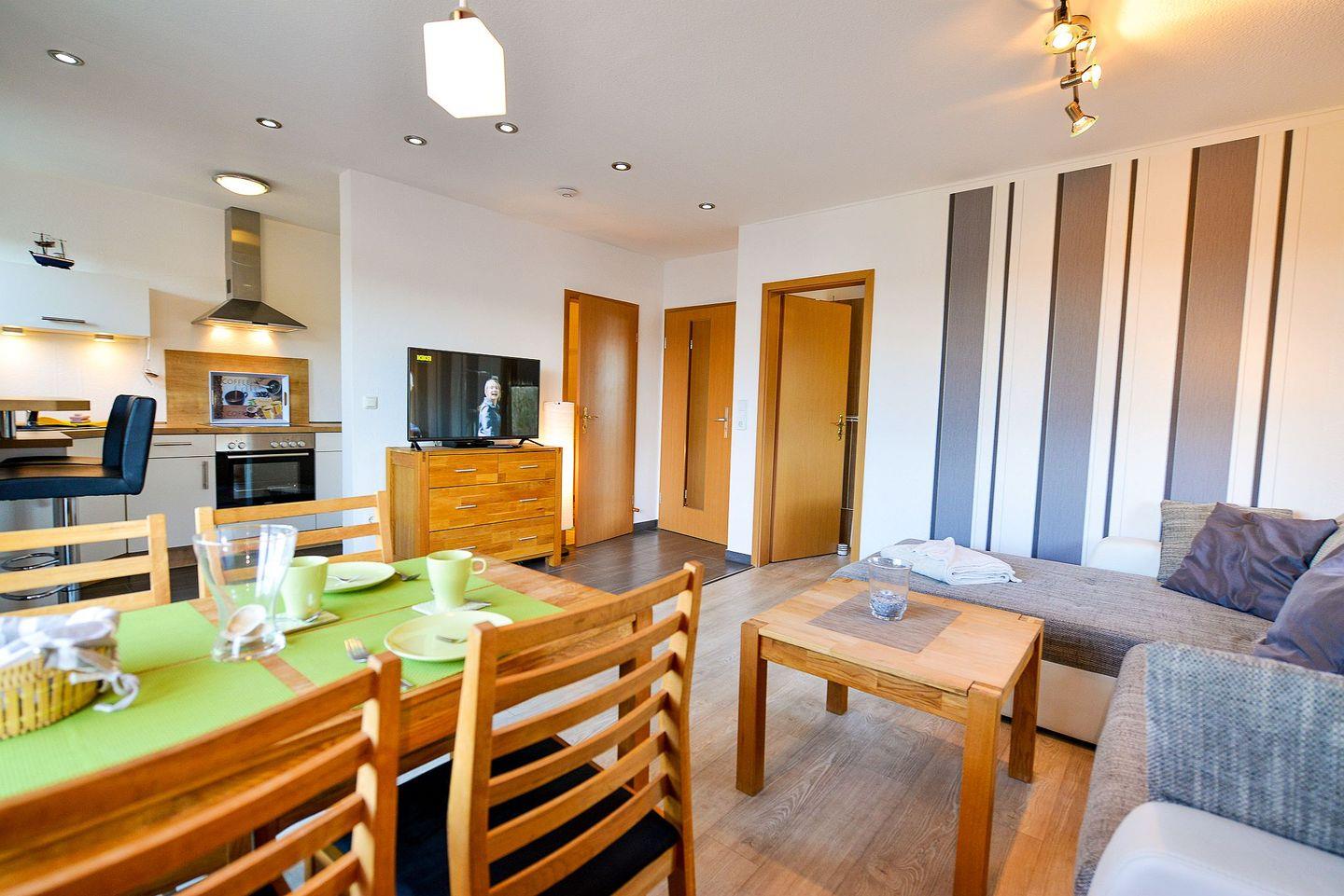 Von der vollausgestatteten Küche, über das eigene Bad und dem großen Flatscreen TV ist die Ferienwohnung komfortabel ausgestattet und lässt Sie unbeschwert Ihren Urlaub erleben.