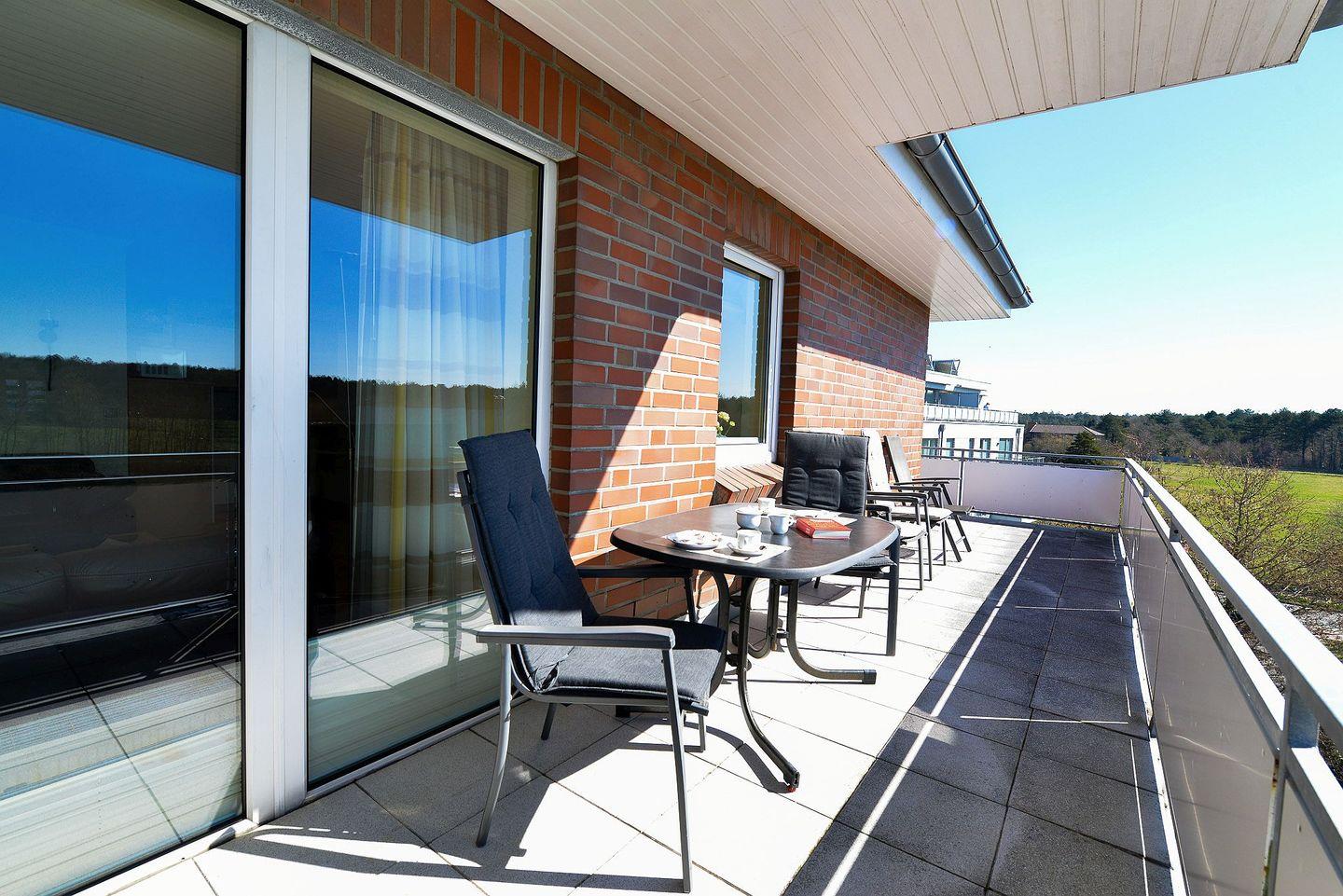 Ein besonderes Highlight ist der große Südbalkon mit gemütlichem Strandkorb – perfekt, um die frische Nordseeluft zu genießen, beim Frühstück das Meeresrauschen zu hören oder abends einfach die Seele baumeln zu lassen.