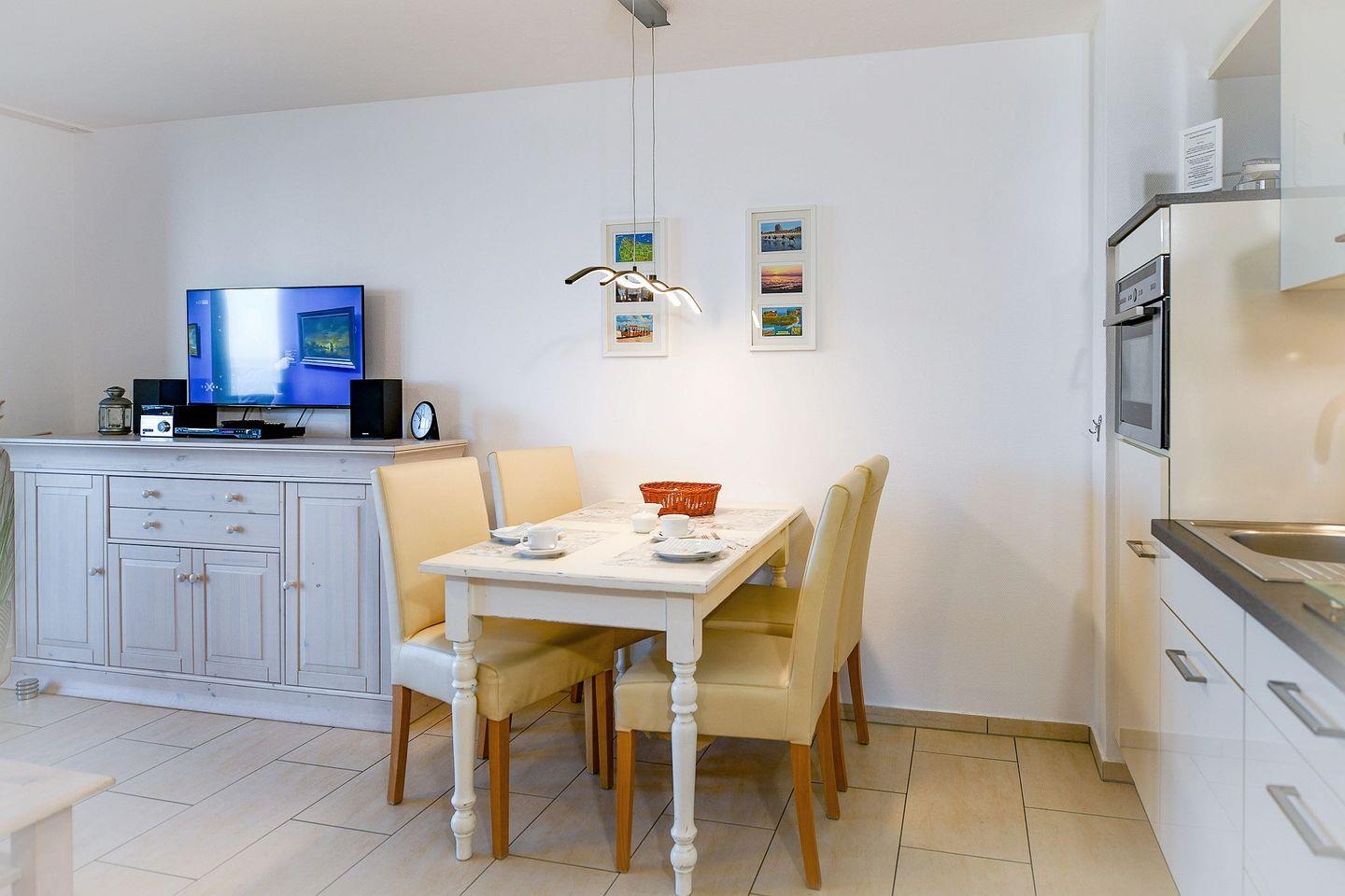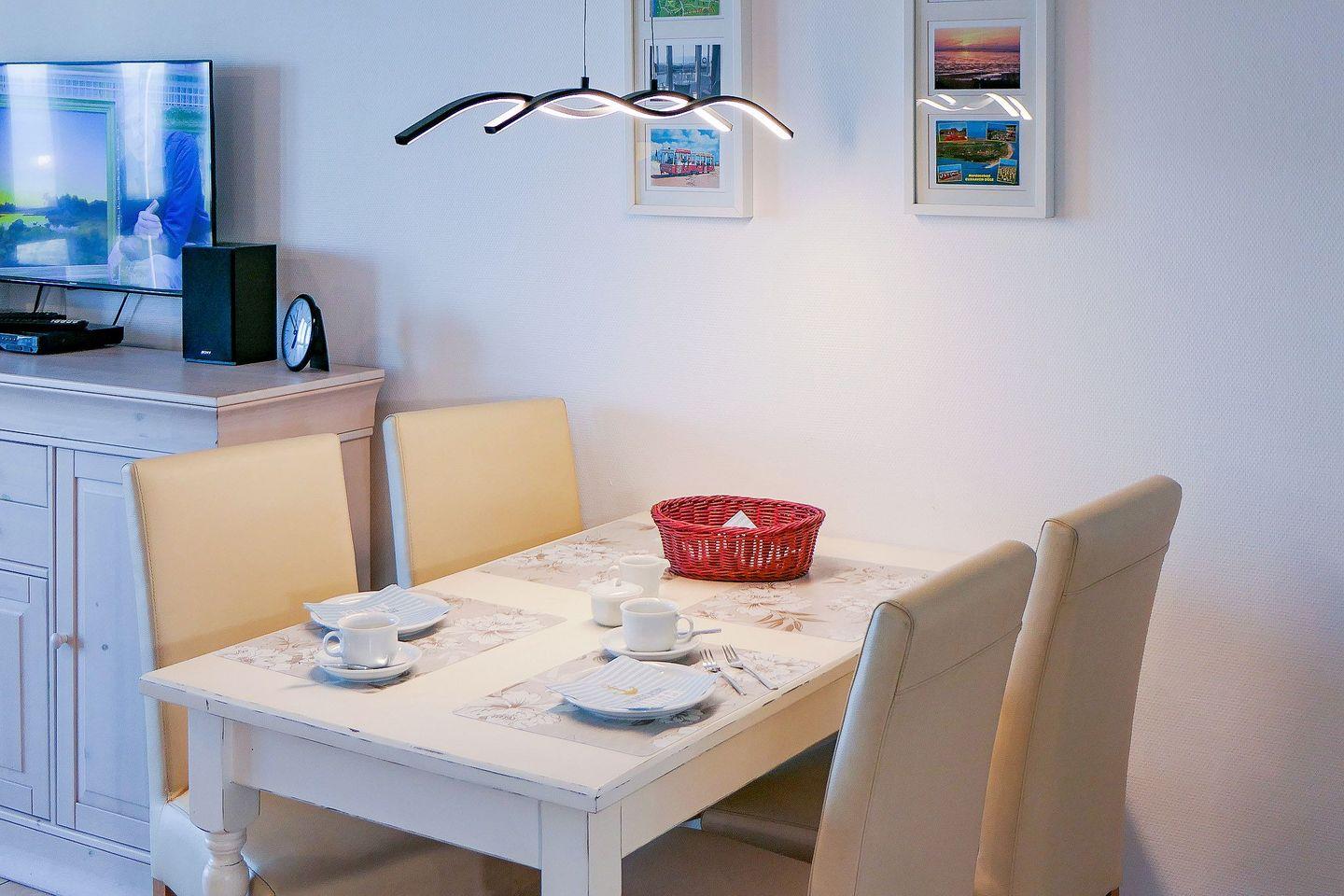 Die ruhige, strandnahe Lage mit direkter Sicht auf das Wattenmeer macht die Ferienwohnung ideal für Paare oder Familien, die entspannte Tage an der Nordsee verbringen möchten.