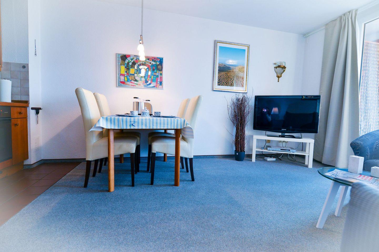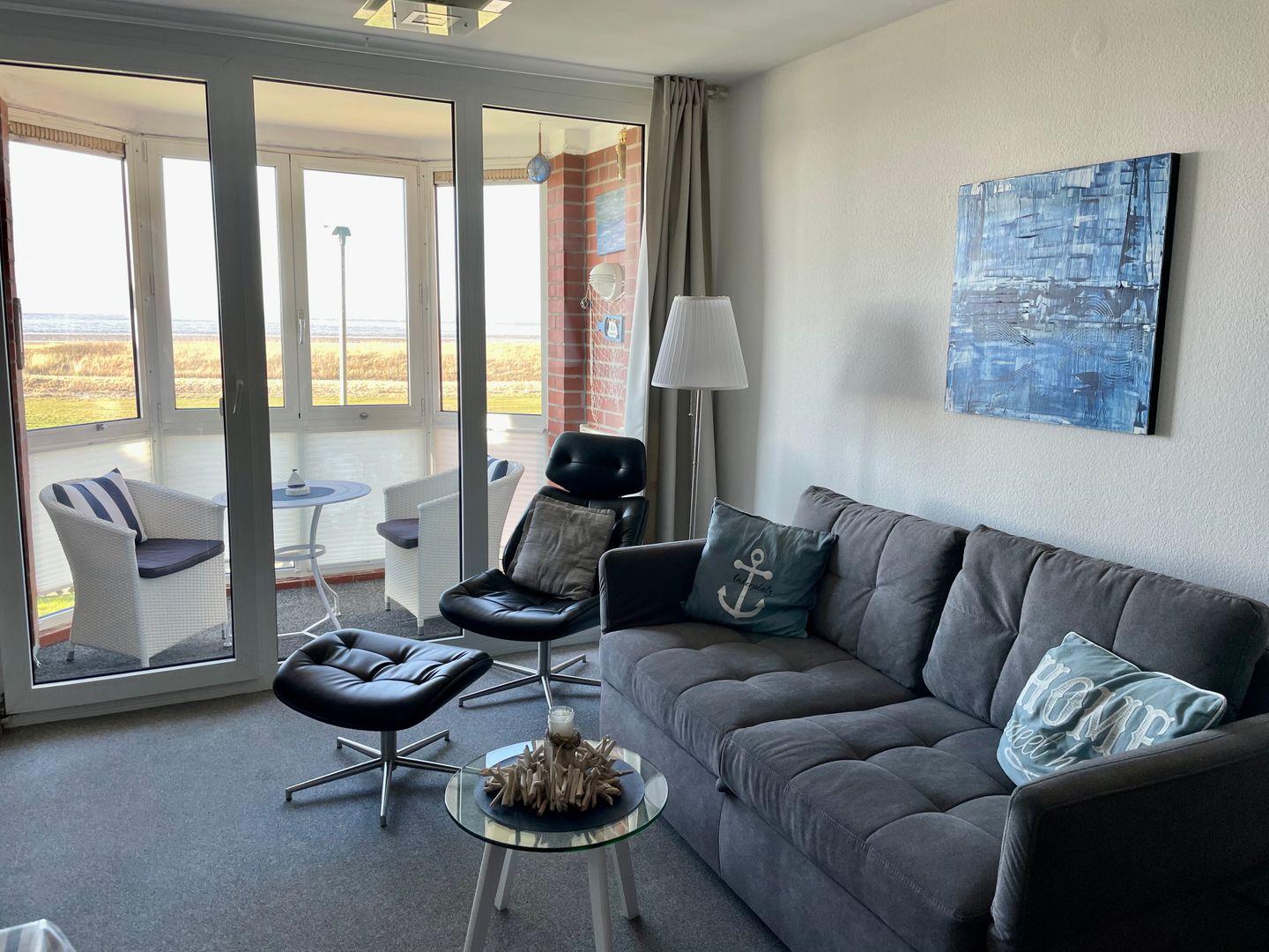 Sie verfügt über ein separates Schlafzimmer sowie ein Wohnzimmer mit Schlafcouch. Ein verglaster, überdachter Balkon erlaubt einen schönen Blick in Richtung Insel Neuwerk. Zur Ausstattung gehören eine praktische Küchenzeile, ein Flatscreen-TV, kostenloses WLAN und eine angenehme Fußbodenheizung, die auch in der kühleren Jahreszeit für Komfort sorgt.