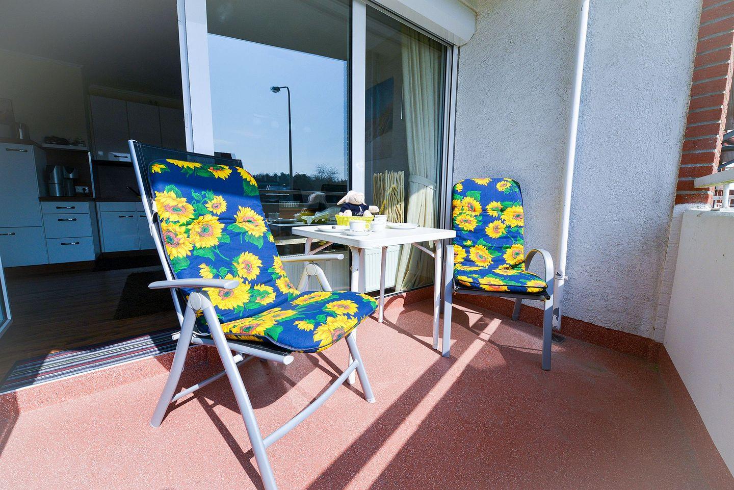 LM 23 Ferienwohnung 50m² im Haus Land und Meer – Cuxhaven Sahlenburg strandnah. Zwei überdachte Balkone laden zum Entspannen ein. Voll ausgestattete Küche, inkl. kostenfreie Tiefgarage – preisgünstig urlauben an der Nordsee.