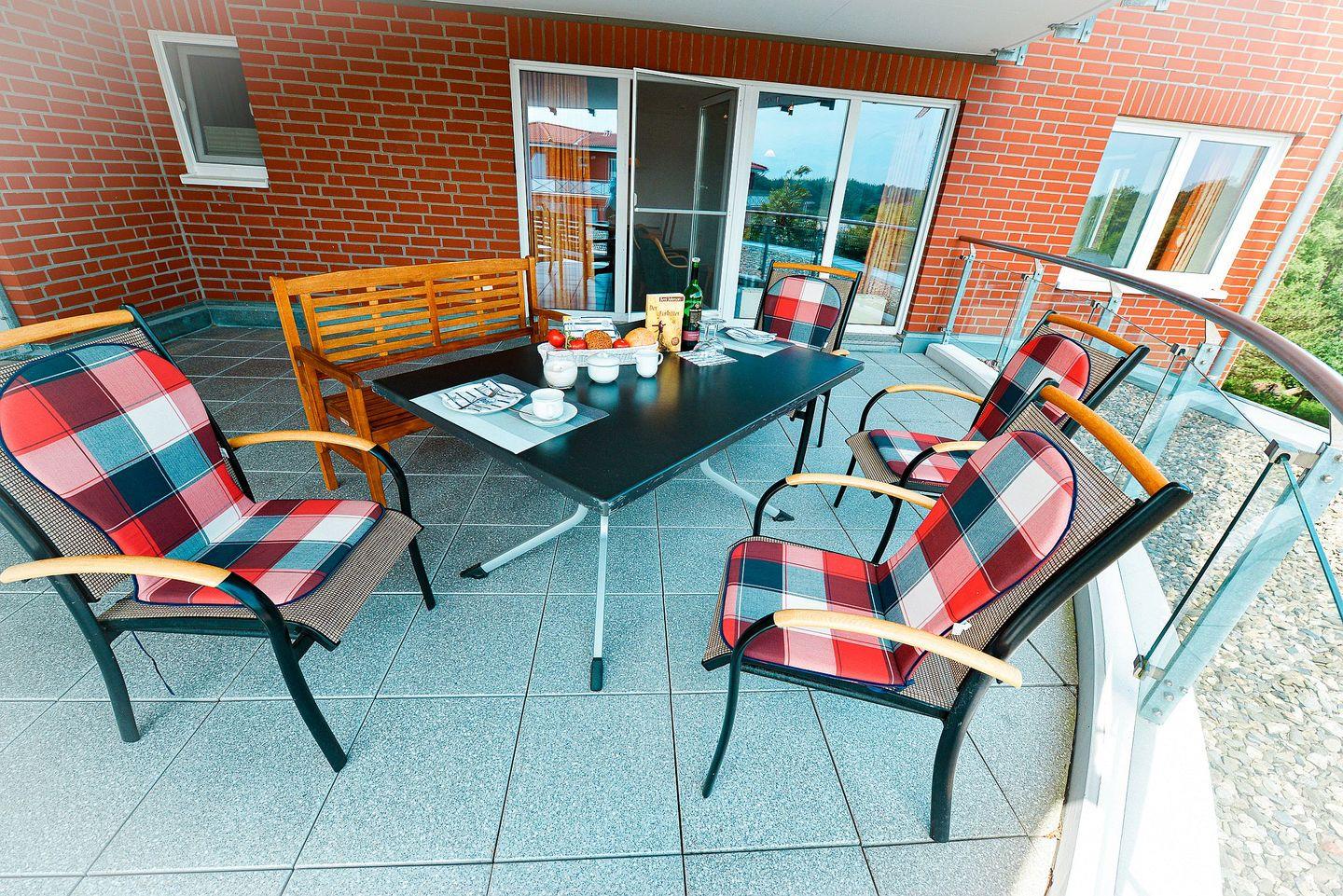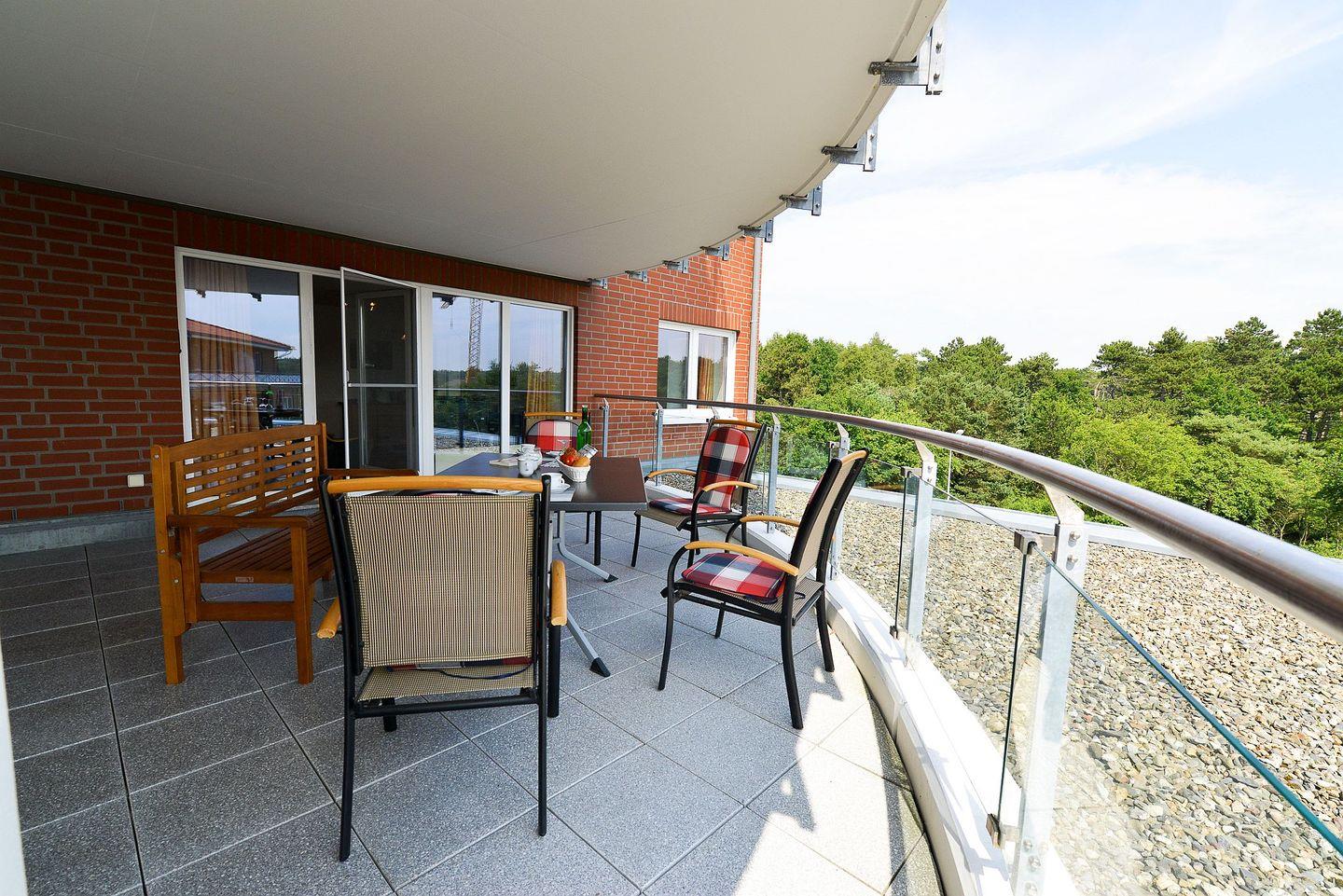 Für erholsame und schöne Stunden, nach einem langen Tag am Meer, eignet sich der überdachte Dachterrassenbalkon, der Ihnen auch nach Ihrem Urlaub noch lange in Erinnerung bleiben wird.
