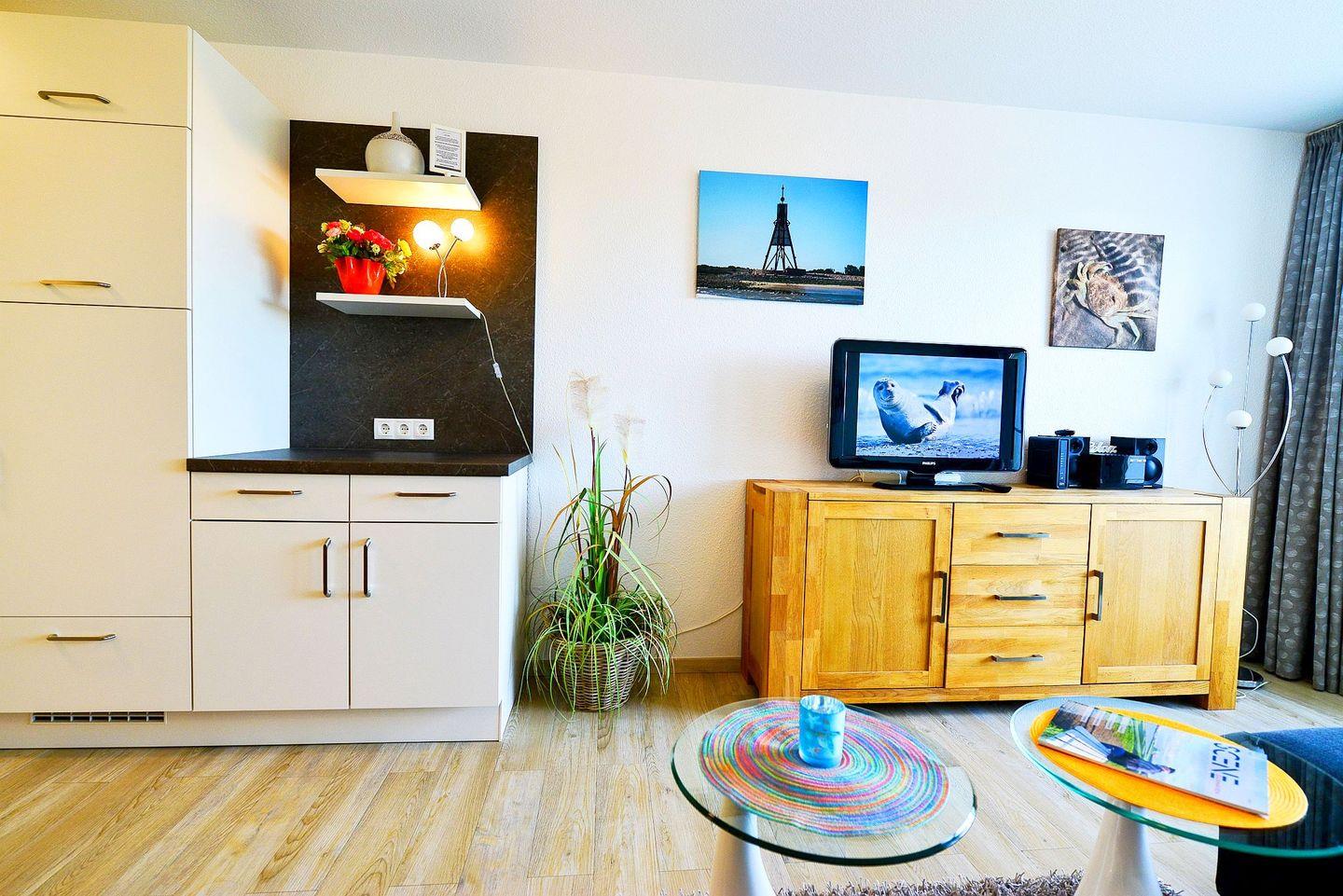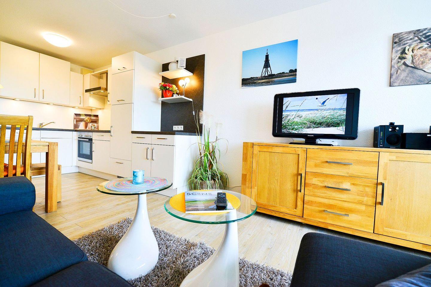 Genießen Sie ein entspanntes Dinner an der Meeresluft, welches sich in der vollwertig ausgestatteten Küche zubereiten lässt und entspannen Sie bei einem gemütlichem TV-Abend.