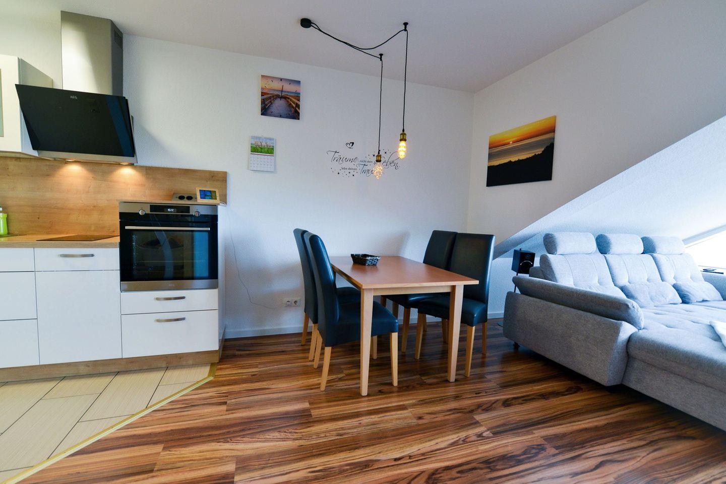 Genießen Sie ein entspanntes Dinner an der Meeresluft, welches sich in der vollwertig ausgestatteten Küchenzeile zubereiten lässt und entspannen Sie bei einem gemütlichem TV-Abend.