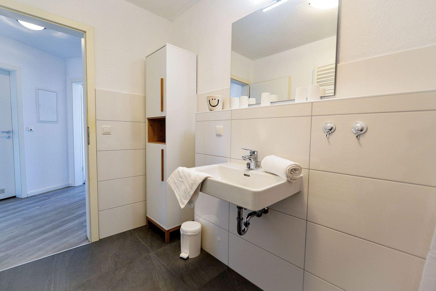 Die Wohnung ist hell und freundlich eingerichtet und verfügt über eine moderne, voll ausgestattete Küche. Neben einer klassischen Kaffeemaschine steht Ihnen hier auch eine zusätzliche Senseo-Kaffeemaschine zur Verfügung. Für Unterhaltung sorgen zwei Flachbildfernseher, und mit dem kostenlosen WLAN bleiben Sie auch im Urlaub gut verbunden. Ein eigener Parkplatz direkt am Haus ist im Preis inbegriffen, ebenso wie ein kleiner Abstellraum für Koffer oder andere Utensilien.