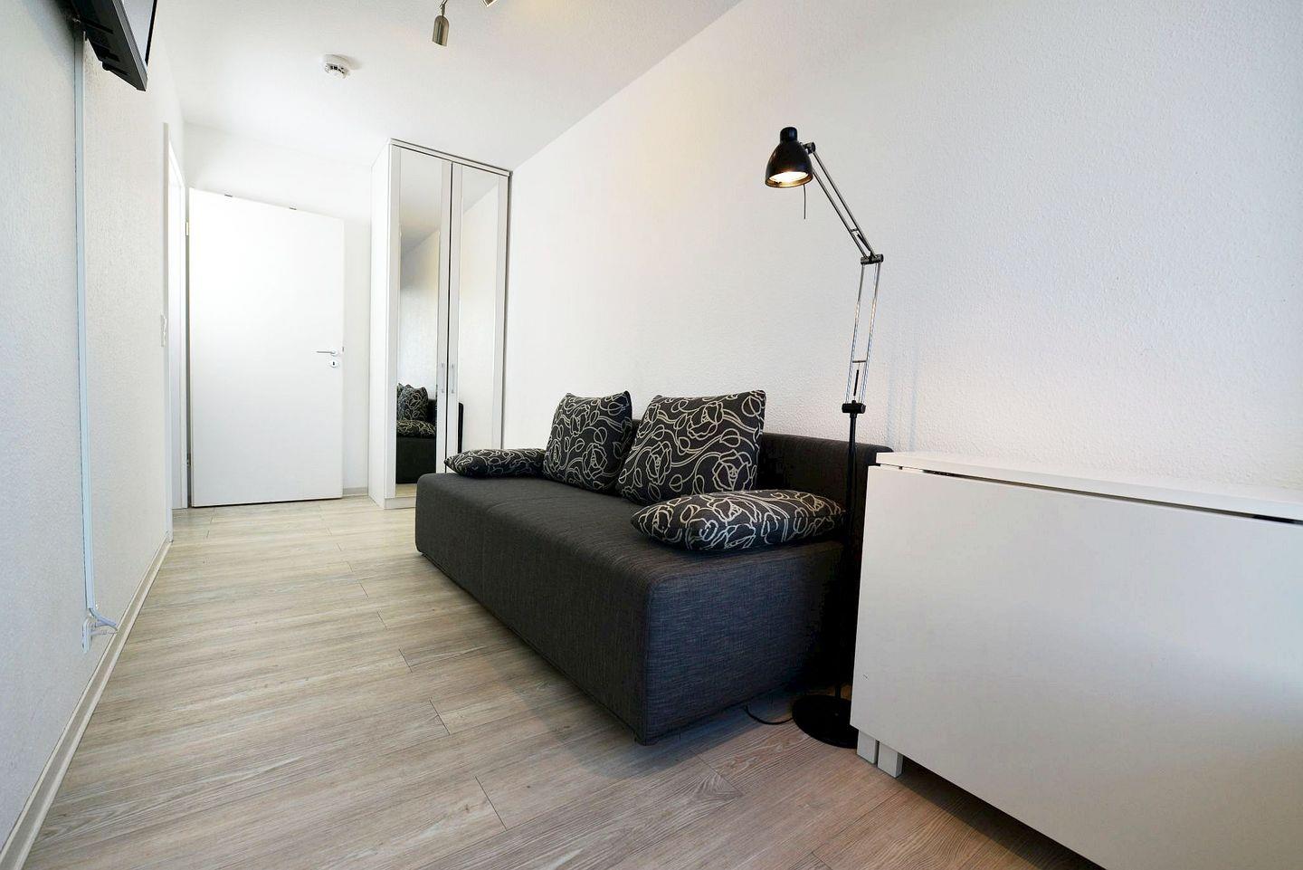 Urlauber, die gemeinsam mit Ihrem Hund verreisen sind genauso willkommen, wie Urlauber ohne Haustier. Für eine komfortable An- und Abreise bietet die Ferienwohnung einen kostenlosen Parkplatz in der Tiefgarage des Hauses. Saisonbedingt befindet sich ein Bäcker direkt im Haus.
