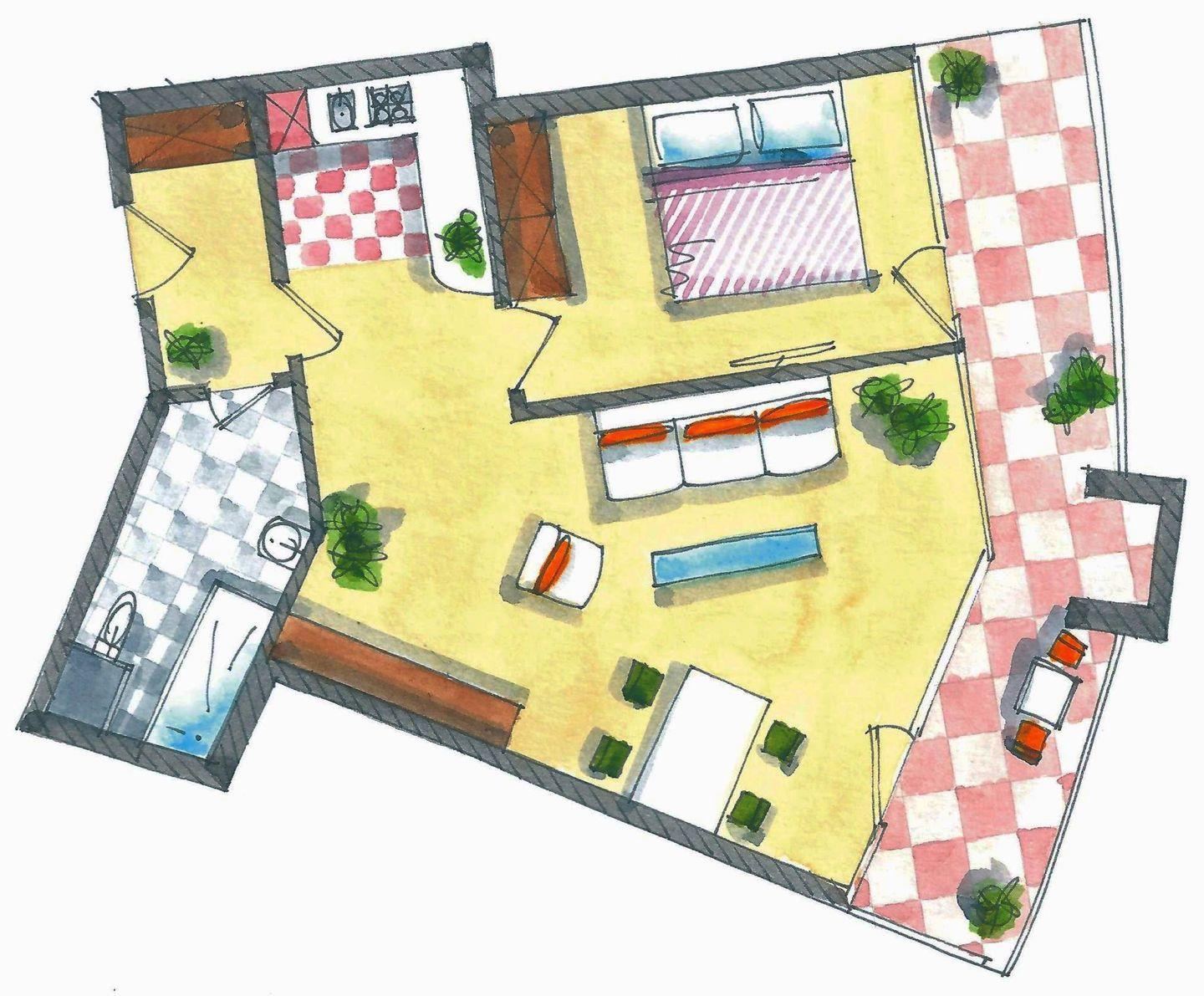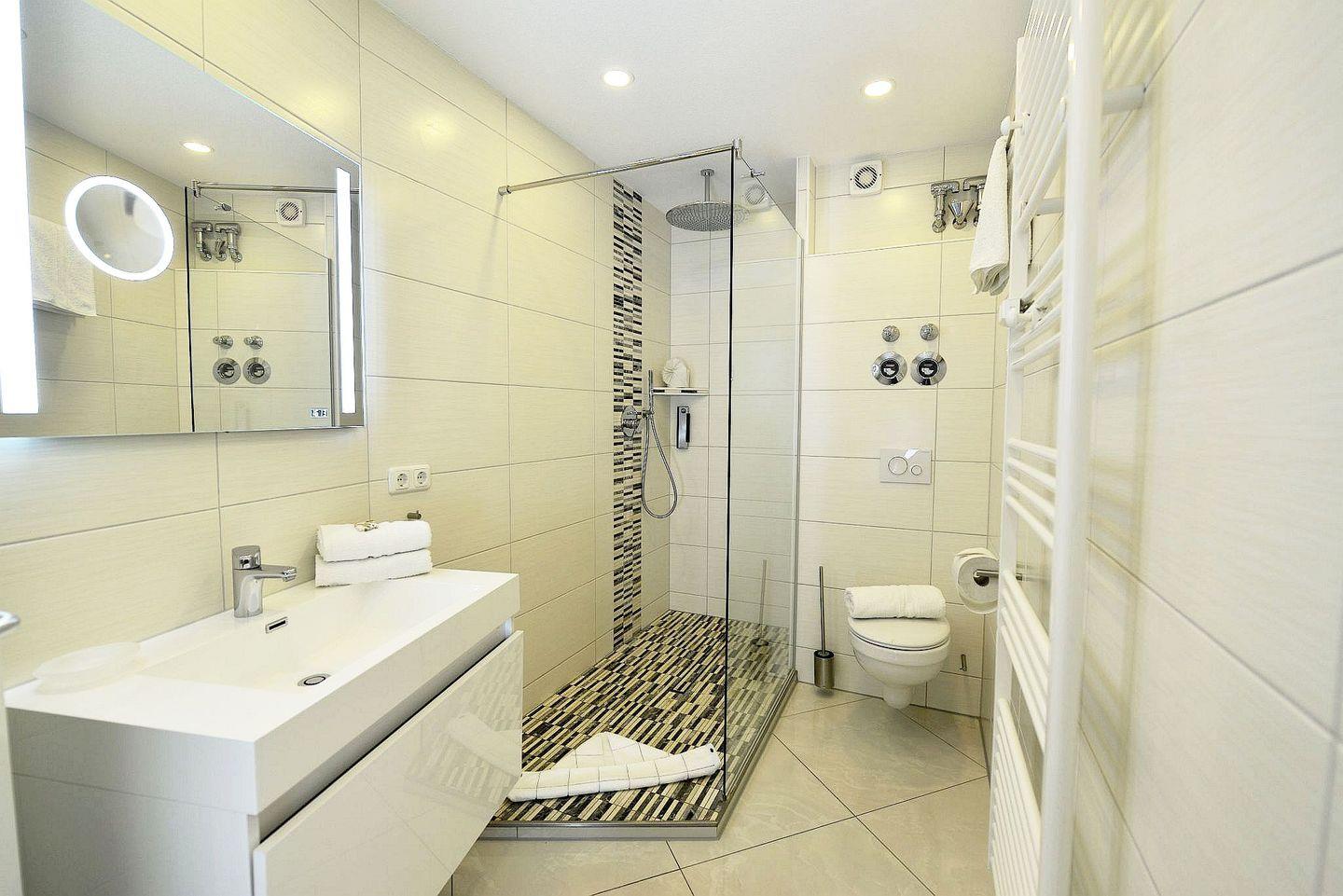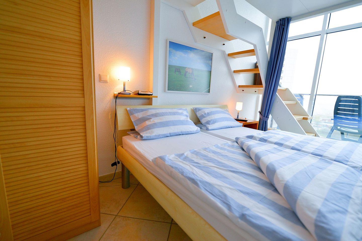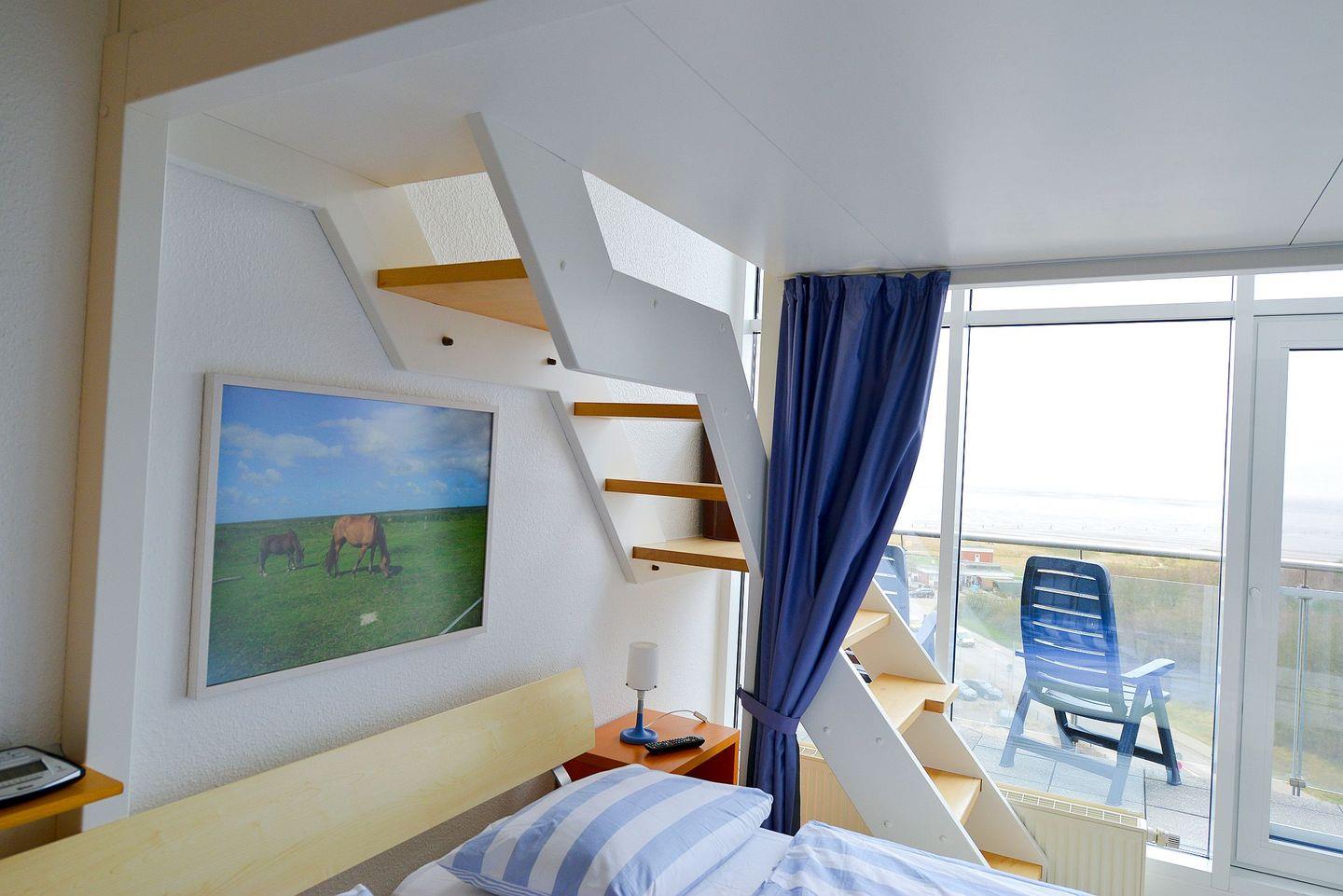 Das moderne Badezimmer mit ebenerdiger Flachdusche bietet Komfort vom ersten Moment an. Im Wohnbereich erwartet Sie eine neue Couch, ein Flatscreen-TV und kostenfreies WLAN. Ein weiterer Fernseher im Schlafzimmer ermöglicht gemütliche Abende – auch mal im Bett. Besonders charmant: Eine kleine Treppe führt zur offenen Empore mit Einzelbett, ideal für ein Kind oder eine zusätzliche Rückzugsmöglichkeit.