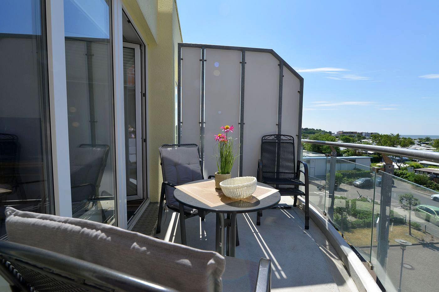 Lange und entspannte Stunden mit Teilblick aufs Meer lassen sich auf dem überdachten Balkon verbringen , der zum Ausspannen, Sonnen und Erholen von langen Strandstunden einlädt und Ihnen bestimmt in Erinnerung bleiben wird.