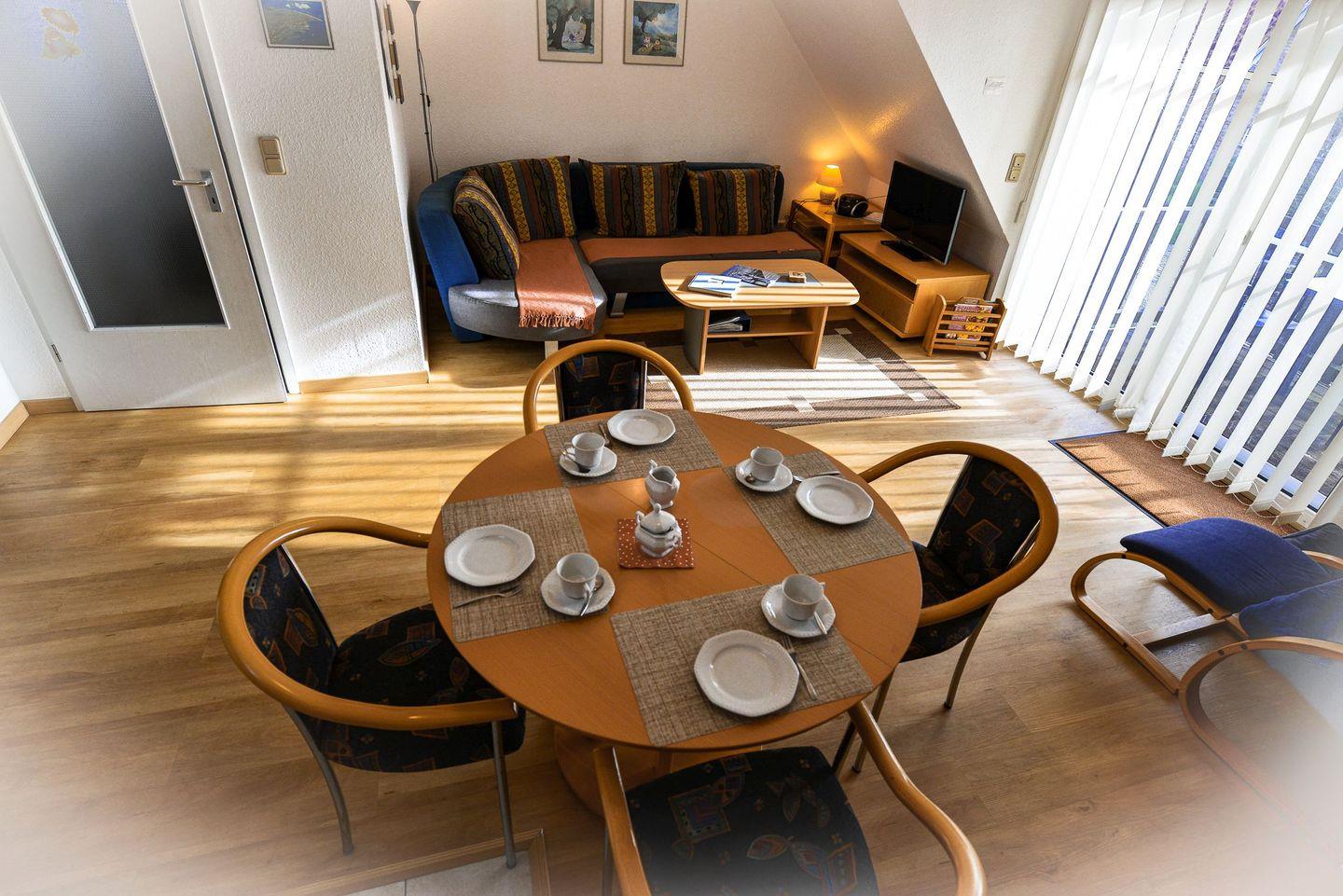 Die vollausgestattete Küchenzeile, wie auch das schöne helle Bad, die Fußbodenheizung und das große Wohnzimmer sorgen für Wohlgefühl und Erholung in Ihrer Ferienwohnung.