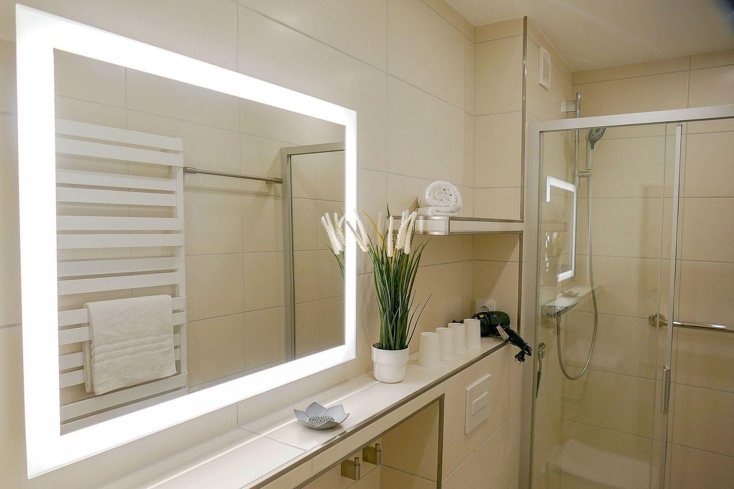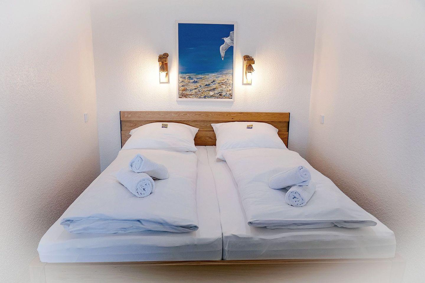 Die ca. 50m² große Ferienwohnung für 4 Personen begrüßt Sie mit modernem Flair, Schwimmbad, Sauna und viel Raum für einen entspannten Urlaub im schönen Norden Deutschlands - Meeresrauschen inklusive! Die lichtdurchflutete Ferienwohnung mit seitlicher Seesicht befindet sich in direkter Strandlage mit einer modernen, offenen und vollausgestatteten Küche, sodass Sie jeden Urlaubstag mit einem entspannten Frühstück am Meer beginnen können. Erholung während Ihres Strandurlaubs garantieren Ihnen, neben dem wunderbaren Sandstrand, die verglaste Südfensterfront zum Öffnen, das neue Bad mit einer Flachdusche, das Schwimmbad im eigenen Haus, sowie die Sauna, die gegen Gebühr genutzt werden kann. Die beiden Flatscreen TV´S und das kostenfreie Wlan garantieren gemütliche und entspannte TV Abende, um sich vom langen Strandtag zu erholen und einfach die Seele baumeln zu lassen.