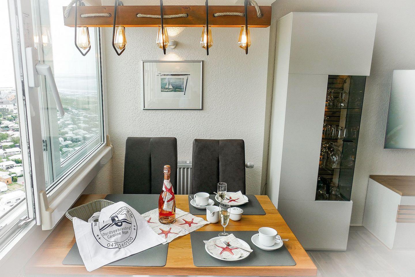 Die moderne und hochwertig ausgestattete Ferienwohnung befindet sich in direkter Strandnähe und seitlicher Seesicht in der 13. Etage des "Standhochhauses" in Cuxhavens schönem Kurteil Sahlenburg.