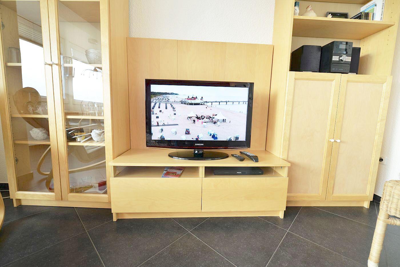 Der Flatscreen TV und das integrierte WLAN sorgen für entspannte TV Abende, um sich vom langen Strandtag zu erholen.