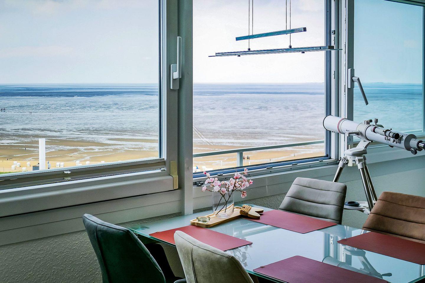 Willkommen in Ihrer eleganten 50?m² Ferienwohnung im Strandhochhaus Cuxhaven-Sahlenburg – ideal für zwei Personen.