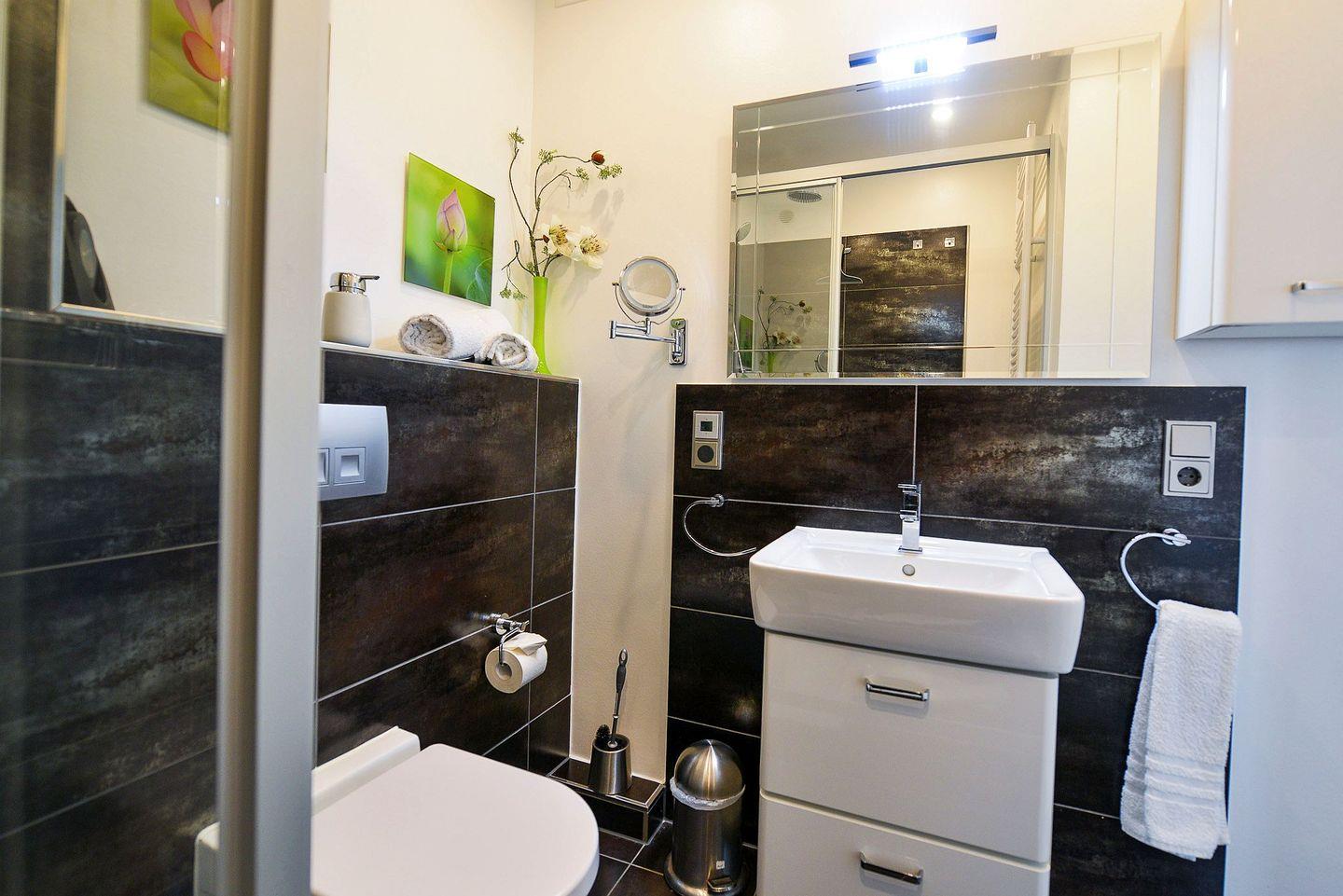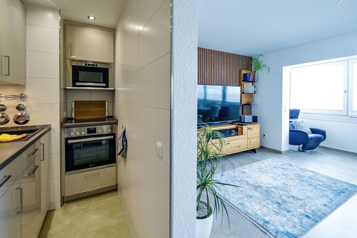 Die offene, voll ausgestattete Küche, das moderne Bad mit Regendusche sowie das separate Schlafzimmer mit komfortablem Doppelbett sorgen für besten Wohnkomfort. Zwei Fernseher und kostenfreies WLAN stehen Ihnen für entspannte Abende zur Verfügung. Im Haus erwarten Sie ein Schwimmbad, zwei Saunen sowie ein Ruheraum – die Nutzung der Sauna ist gegen Gebühr möglich.