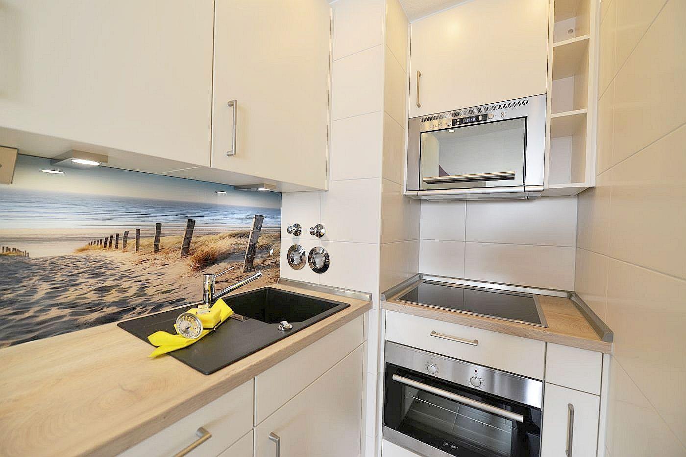 Die Ferienwohnung befindet sich in direkter Strandlage mit einer separaten und offenen Küchenzeile, sodass Sie jeden Urlaubstag mit einem entspannten Frühstück beginnen können.