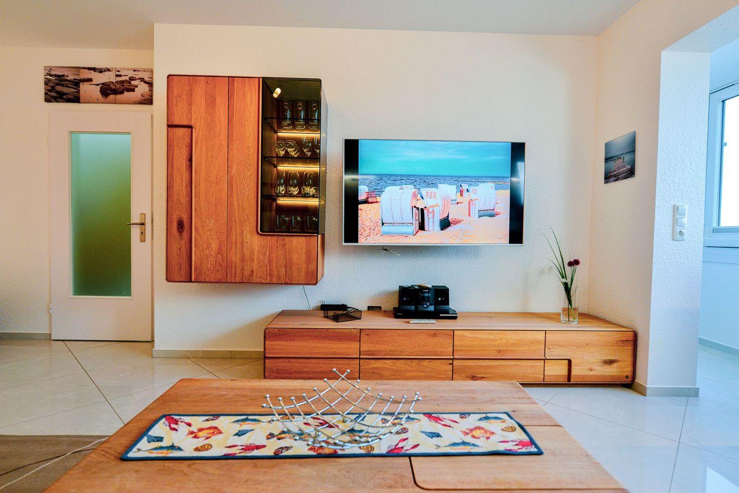 Die beiden Flatscreen TVs und das kostenlose WLAN garantieren gemütliche und entspannte TV Abende, um sich vom langen Strandtag zu erholen und einfach die Seele baumeln zu lassen.