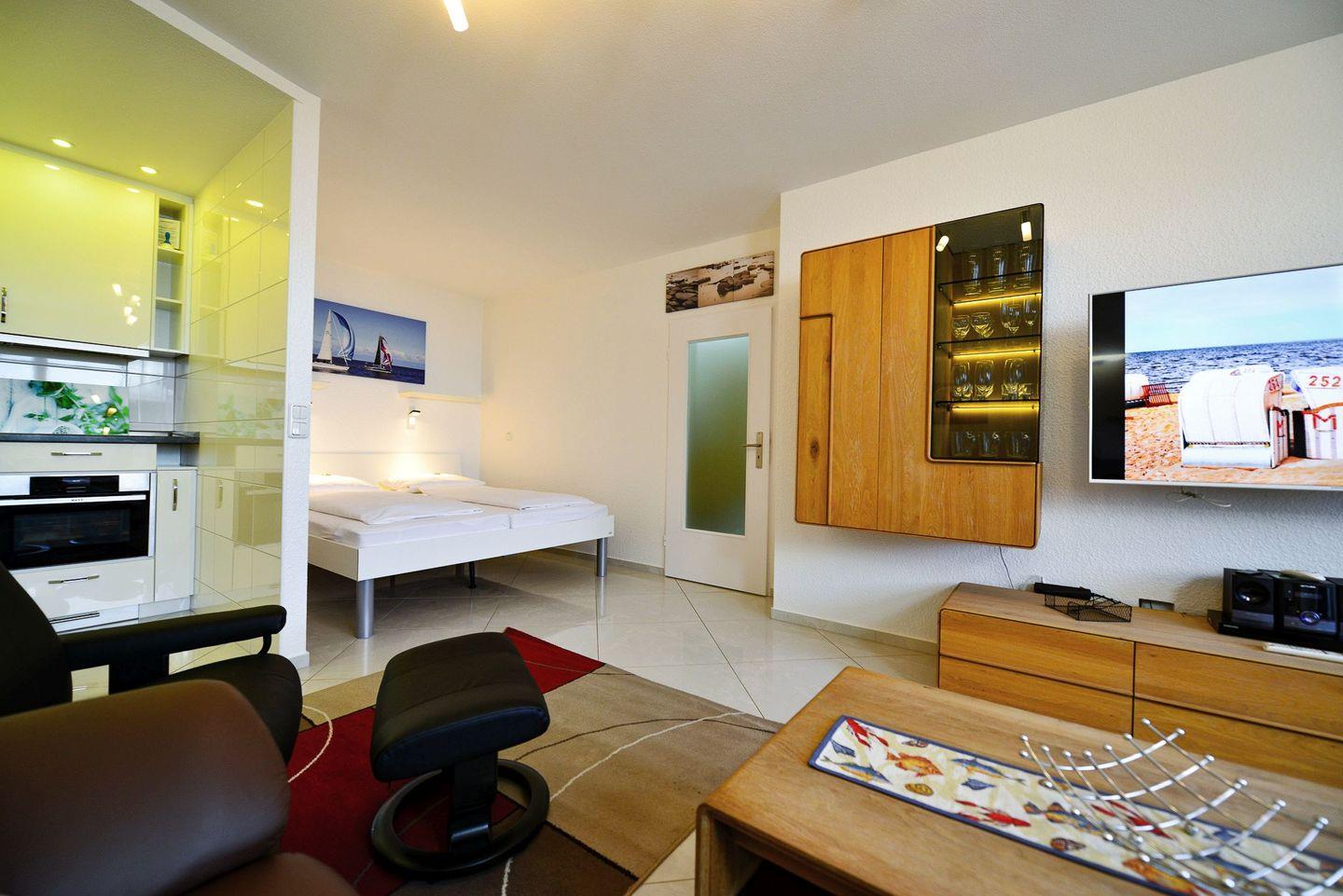 Die ca. 50m² große, modern und hochwertig eingerichtete Ferienwohnung für bis zu 4 Personen begrüßt Sie mit charmantem Flair, Schwimmbad, Sauna und viel Raum für einen entspannten Urlaub im schönen Norden Deutschlands - Meeresrauschen mit Panoramaseesicht inklusive!