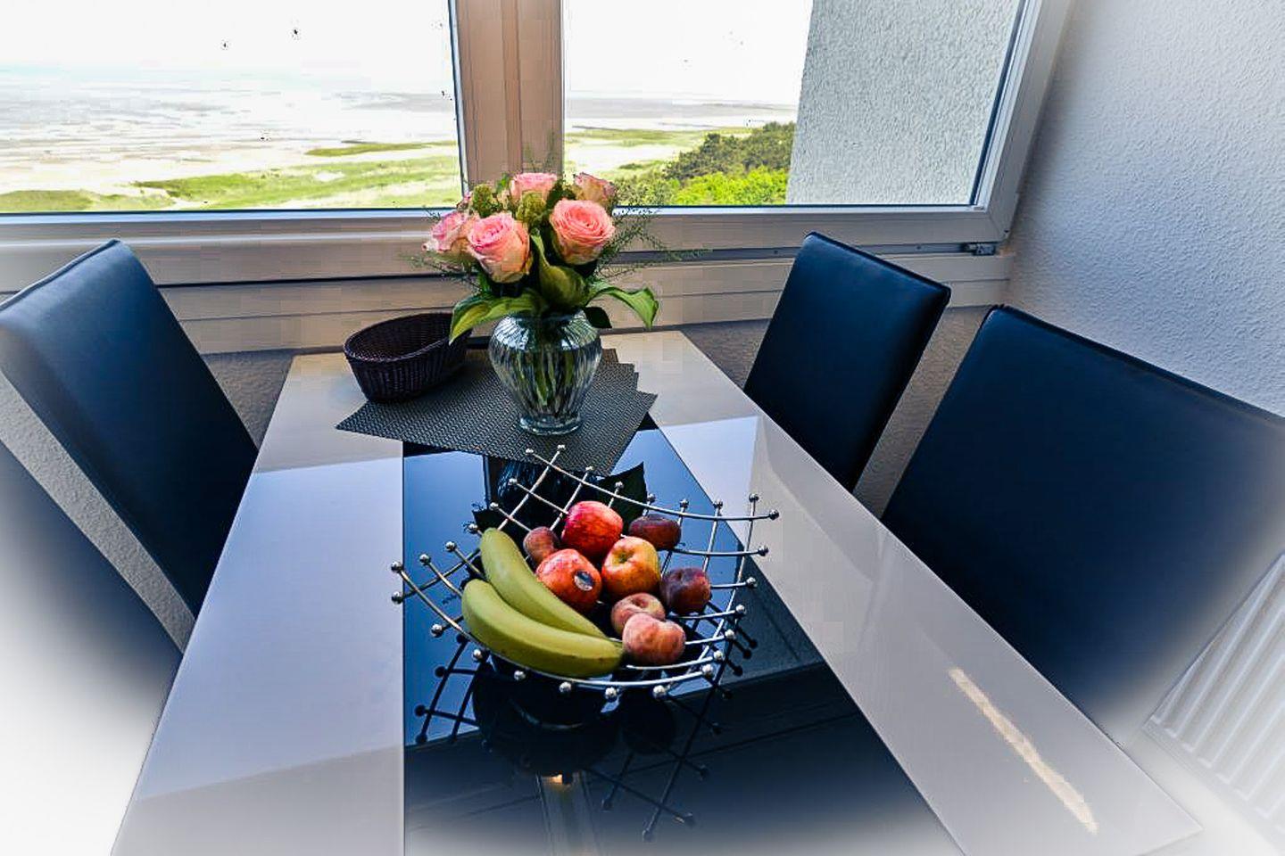 Die lichtdurchflutete Ferienwohnung mit Panoramaseesicht befindet sich in direkter Strandlage mit einer modernen, offenen und vollausgestatteten Küche, sodass Sie jeden Urlaubstag mit einem entspannten Frühstück mit direktem Blick aufs Meer beginnen können.