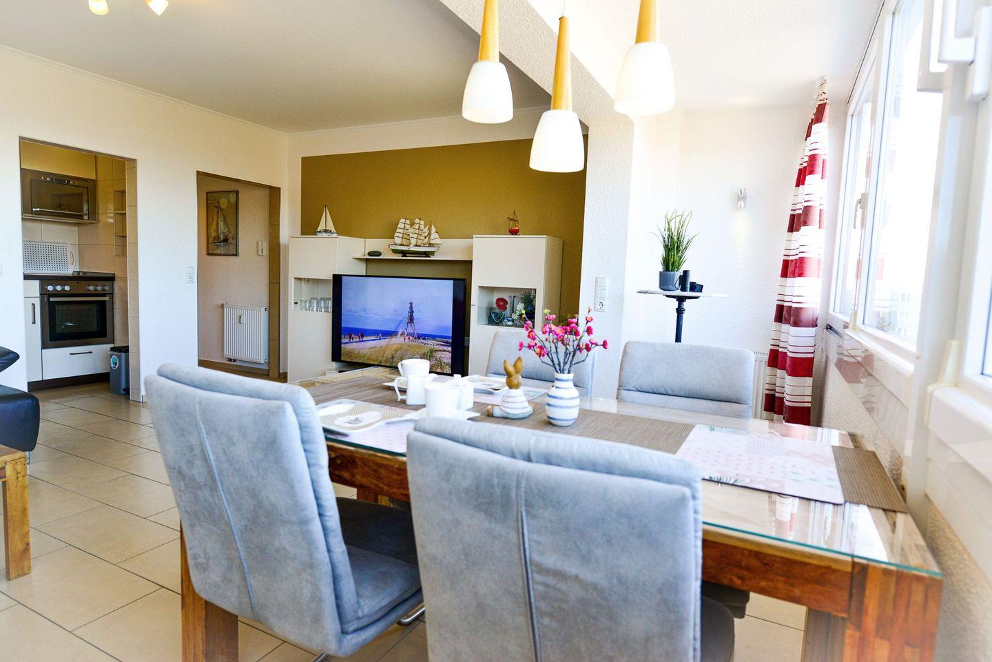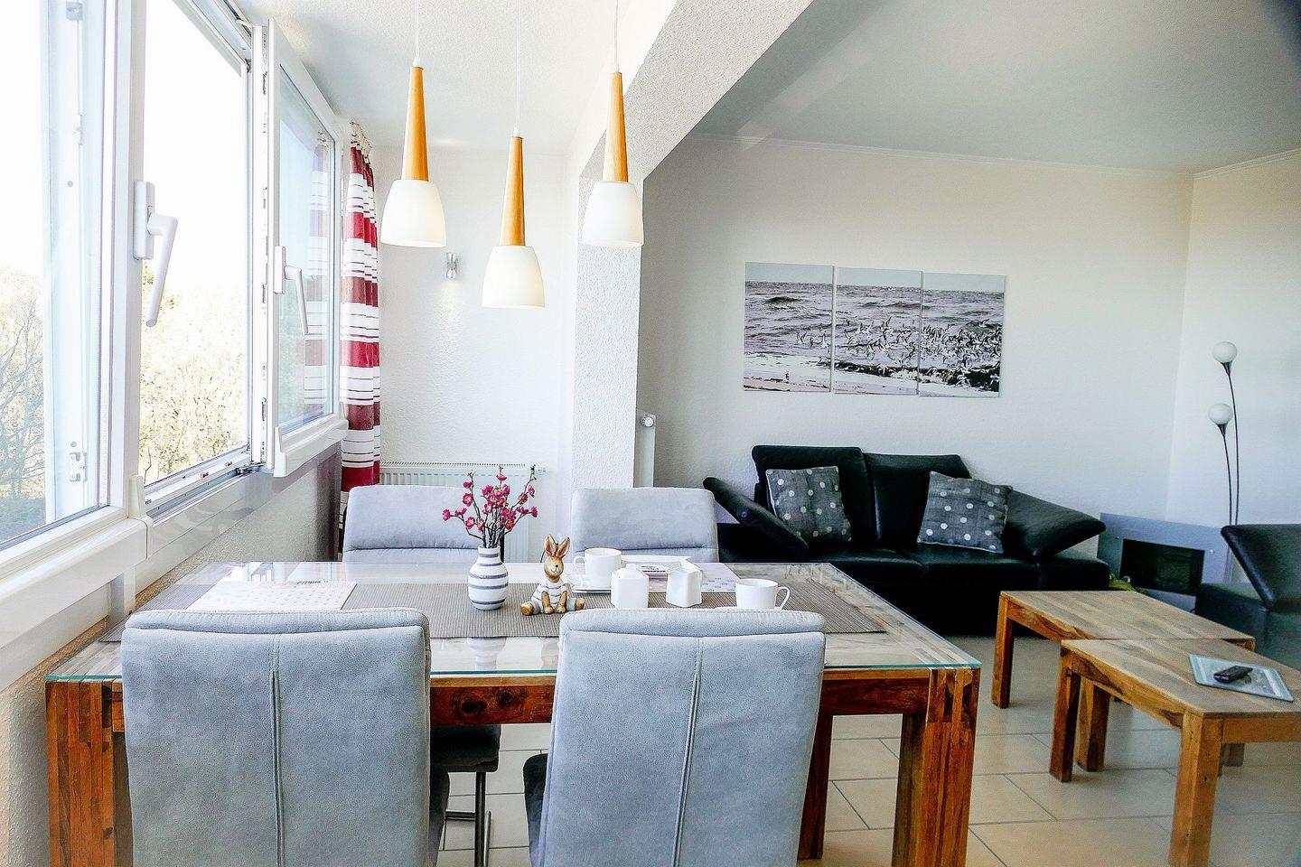 Die ca. 60m² große, modern und hochwertig eingerichtete Ferienwohnung für bis zu 4 Personen begrüßt Sie mit charmantem Flair, Schwimmbad, Sauna und viel Raum für einen entspannten Urlaub im schönen Norden Deutschlands - Meeresrauschen und direkte Seesicht inklusive!