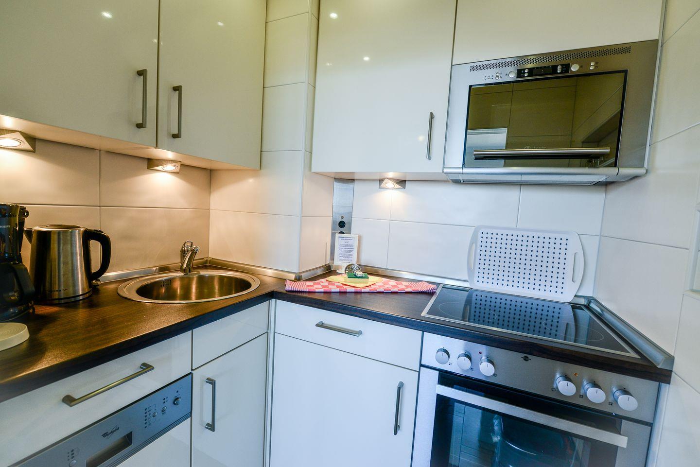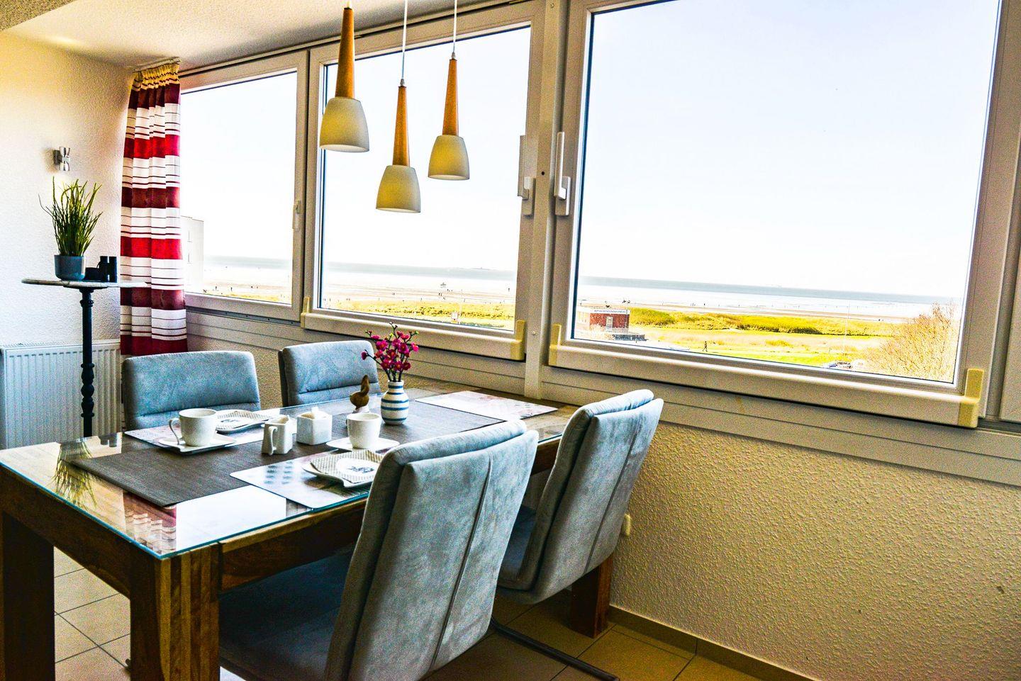 Die lichtdurchflutete Ferienwohnung mit direktem Seeblick befindet sich in direkter Strandlage mit einer modernen, offenen und vollausgestatteten Küche, sodass Sie jeden Urlaubstag mit einem entspannten Frühstück mit direktem Blick aufs Meer beginnen können.