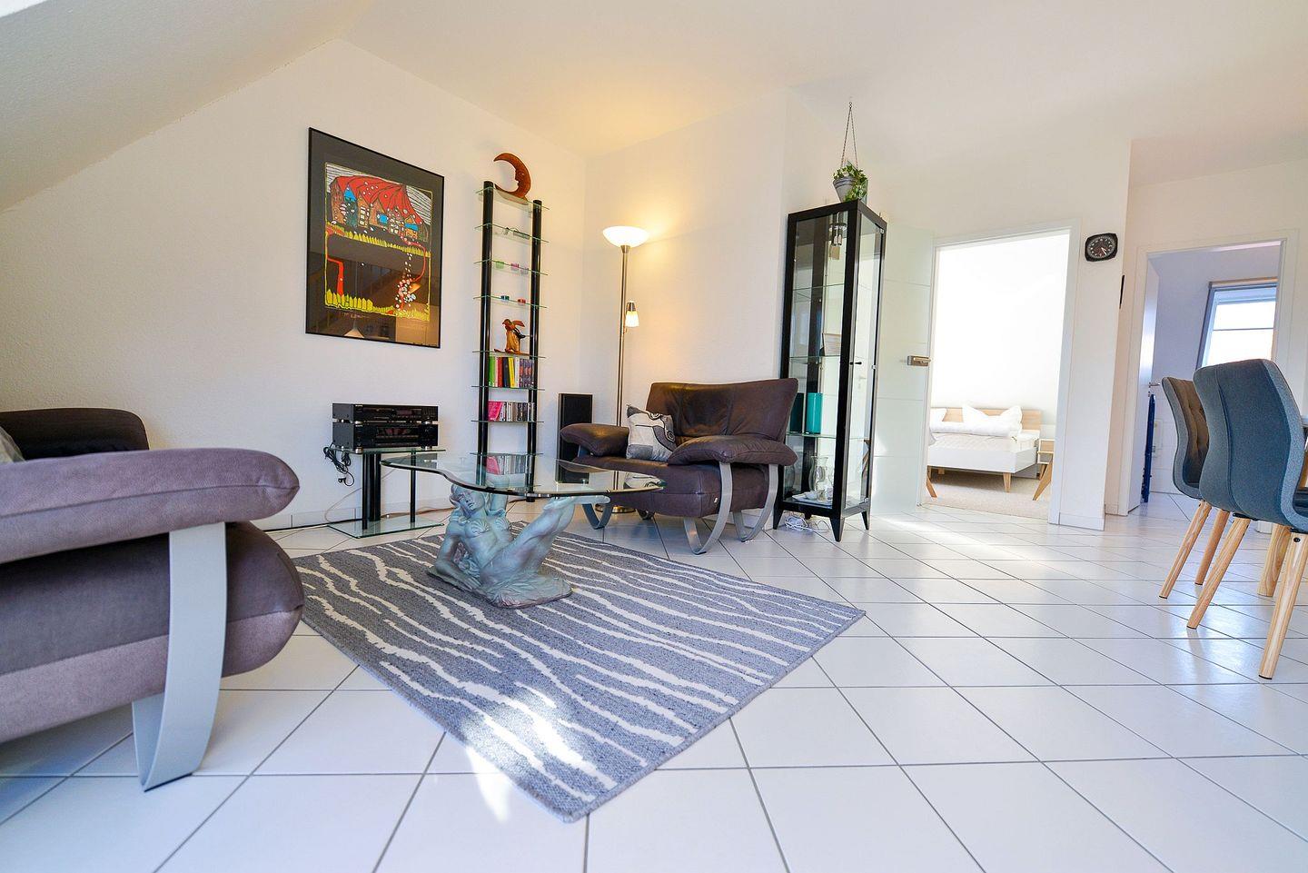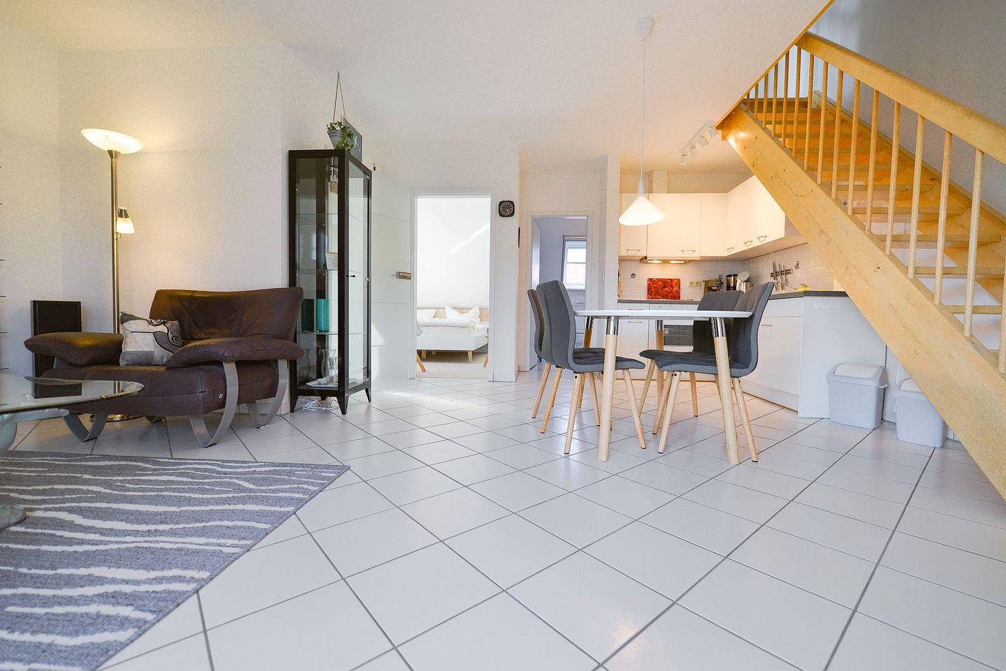 Moderne, nordische und helle Ferienwohnung überdachtem Südbalkon