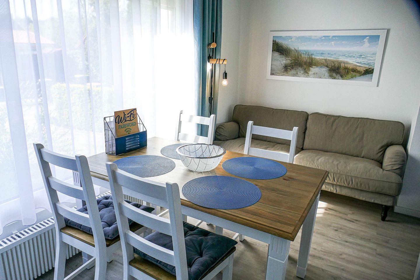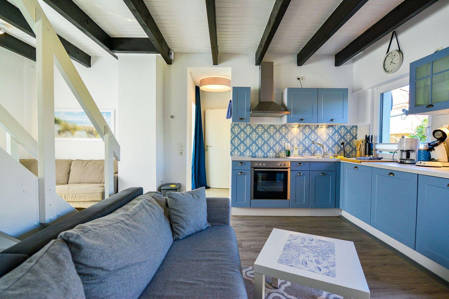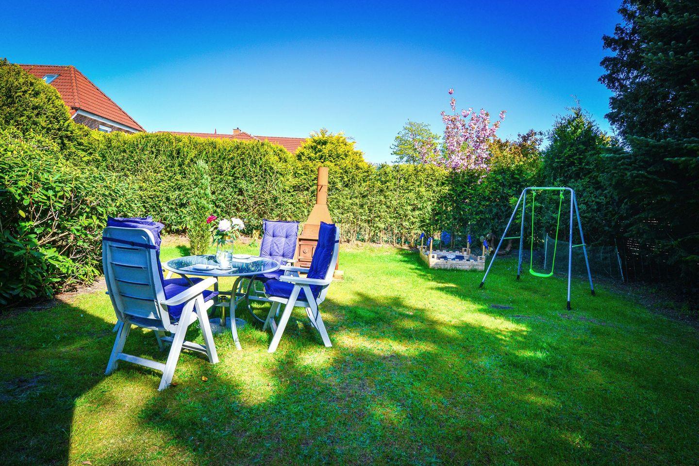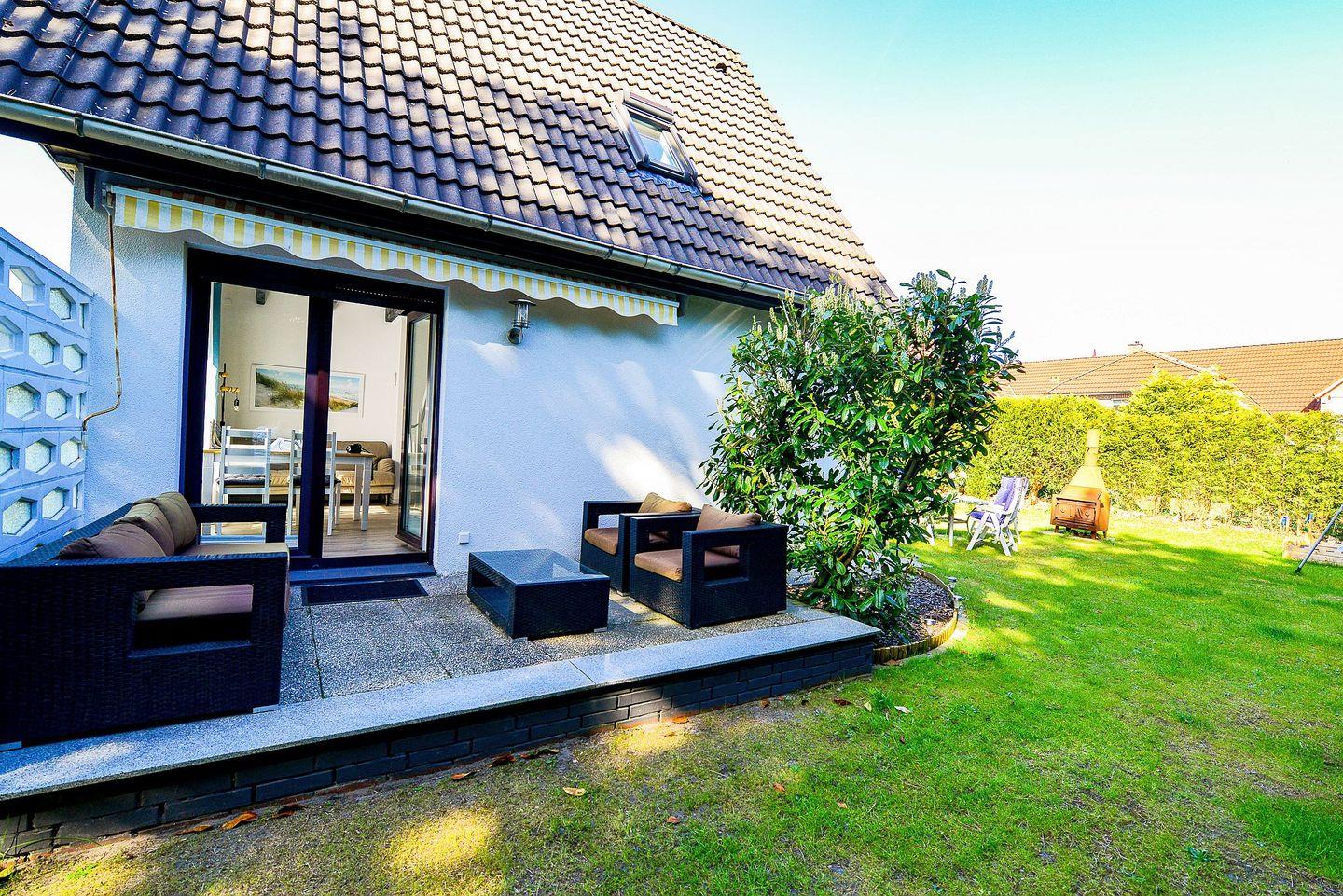 Die liebevolle Einrichtung, klare Raumaufteilung und der eingewachsene Garten mit möblierter Terrasse bieten ein perfektes Ambiente für Erholung. Ob Sonne tanken, grillen oder lesen – hier fühlt man sich sofort zuhause. Ein Grill und ein abschließbarer Fahrradschuppen stehen zur Verfügung – ideal für aktive Urlauber.