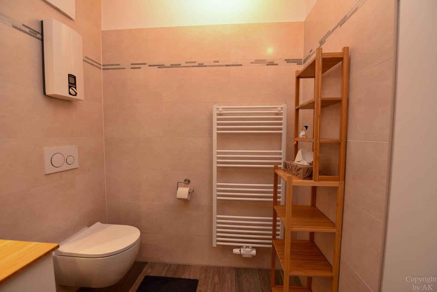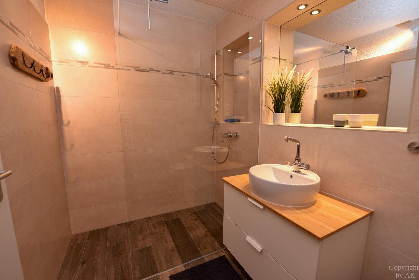 Erleben Sie pure Erholung im neu gestalteten Badezimmer. Die bodentiefe Dusche, umgeben von moderner Einrichtung und ausgestattet mit hochwertigen Sanitärelementen, garantiert Ihnen Luxus und Komfort. Hier können Sie sich von den Abenteuern des Tages erholen und neue Kräfte sammeln.