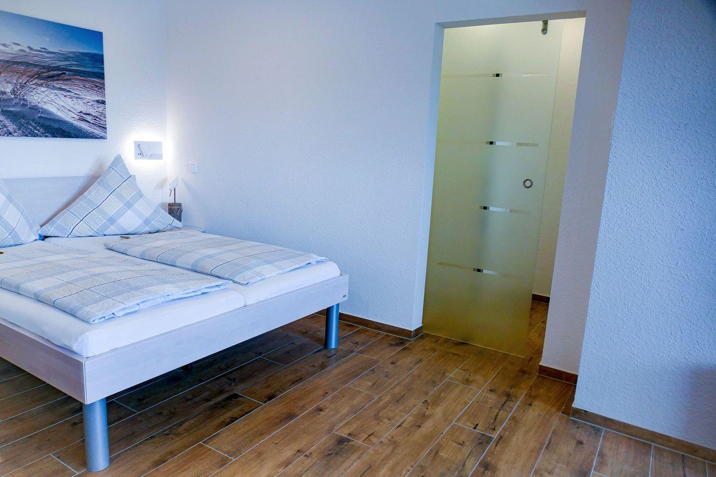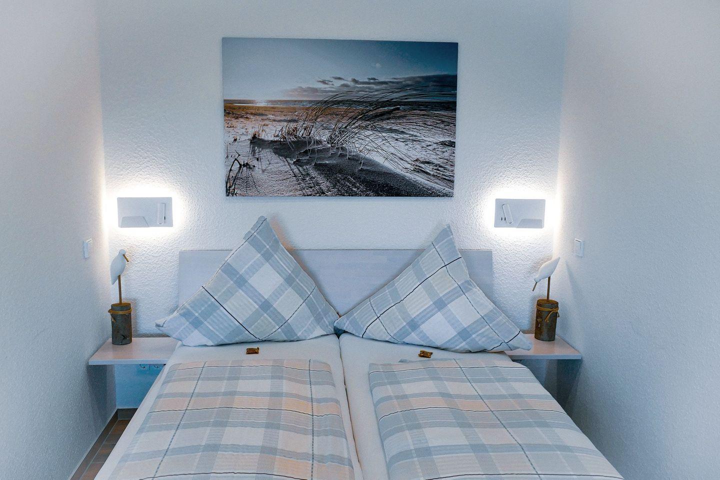 Die ca. 50m² große Ferienwohnung für 4 Personen begrüßt Sie mit modernem Flair, Schwimmbad, Sauna und viel Raum für einen entspannten Urlaub im schönen Norden Deutschlands - Meeresrauschen inklusive! Die lichtdurchflutete Ferienwohnung mit seitlicher Seesicht befindet sich in direkter Strandlage mit einer modernen, offenen und vollausgestatteten Küche, sodass Sie jeden Urlaubstag mit einem entspannten Frühstück am Meer beginnen können. Erholung während Ihres Strandurlaubs garantieren Ihnen, neben dem wunderbaren Sandstrand, die verglaste Südfensterfront zum Öffnen, das neue Bad mit einer Flachdusche, das Schwimmbad im eigenen Haus, sowie die Sauna, die gegen Gebühr genutzt werden kann. Der Flatscreen TV und das kostenfreie Wlan garantieren gemütliche und entspannte TV Abende, um sich vom langen Strandtag zu erholen und einfach die Seele baumeln zu lassen.