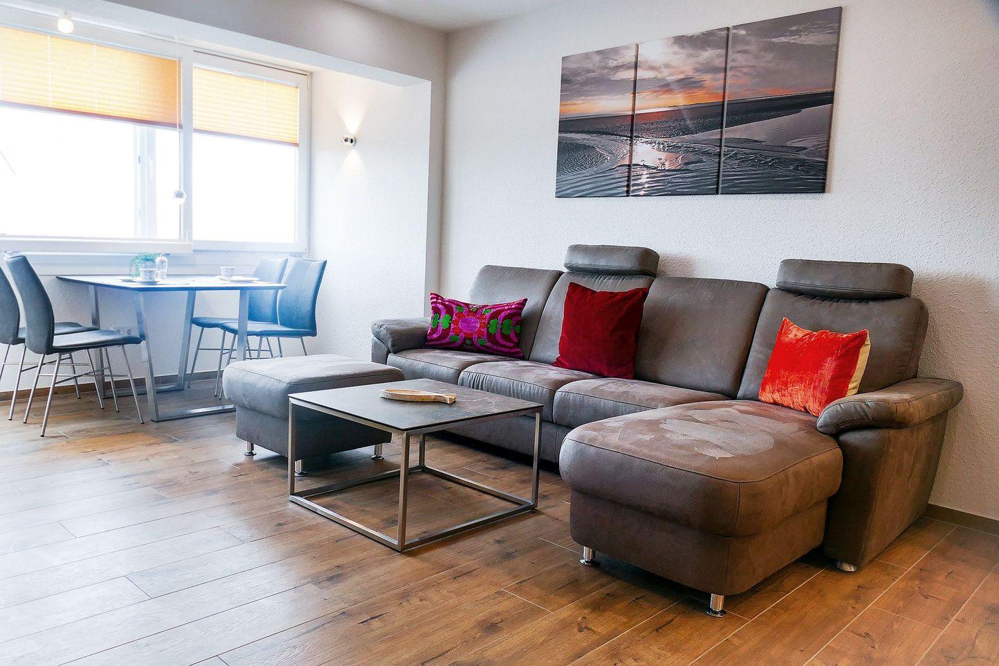 Die ca. 50m² neue und hochwertige Ferienwohnung für bis zu 4 Personen begrüßt Sie mit modernem Flair, Schwimmbad, Sauna und viel Raum für einen entspannten Urlaub im schönen Norden Deutschlands - Meeresrauschen inklusive!