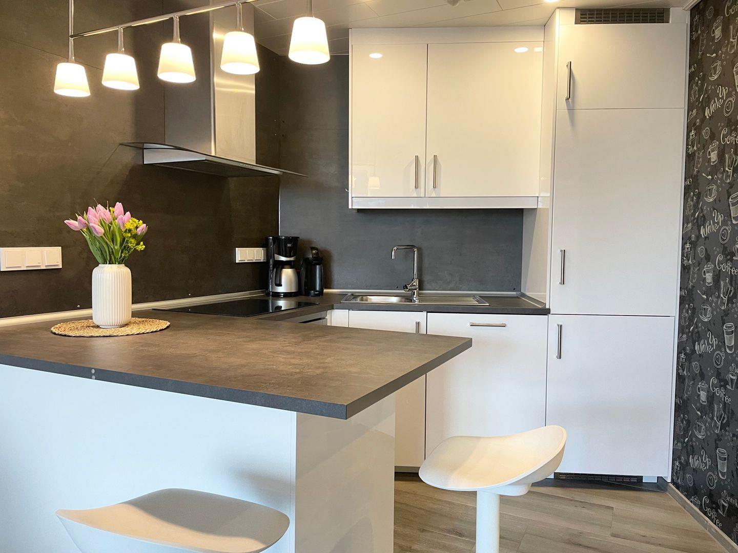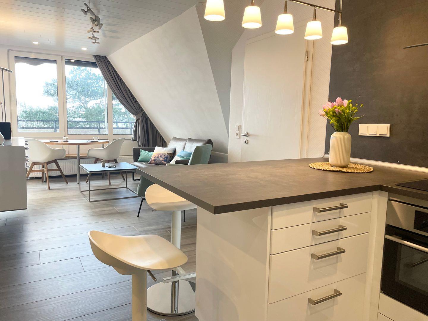 Die Wohnung überzeugt mit modernem SmartHome-System, separatem Schlafzimmer mit Doppelbett und einer voll ausgestatteten Küche. Nachhaltige Ausstattung, durchdachte Technik und hochwertige Details machen sie zu einer echten Rundum-Sorglos-Ferienwohnung direkt am Meer.