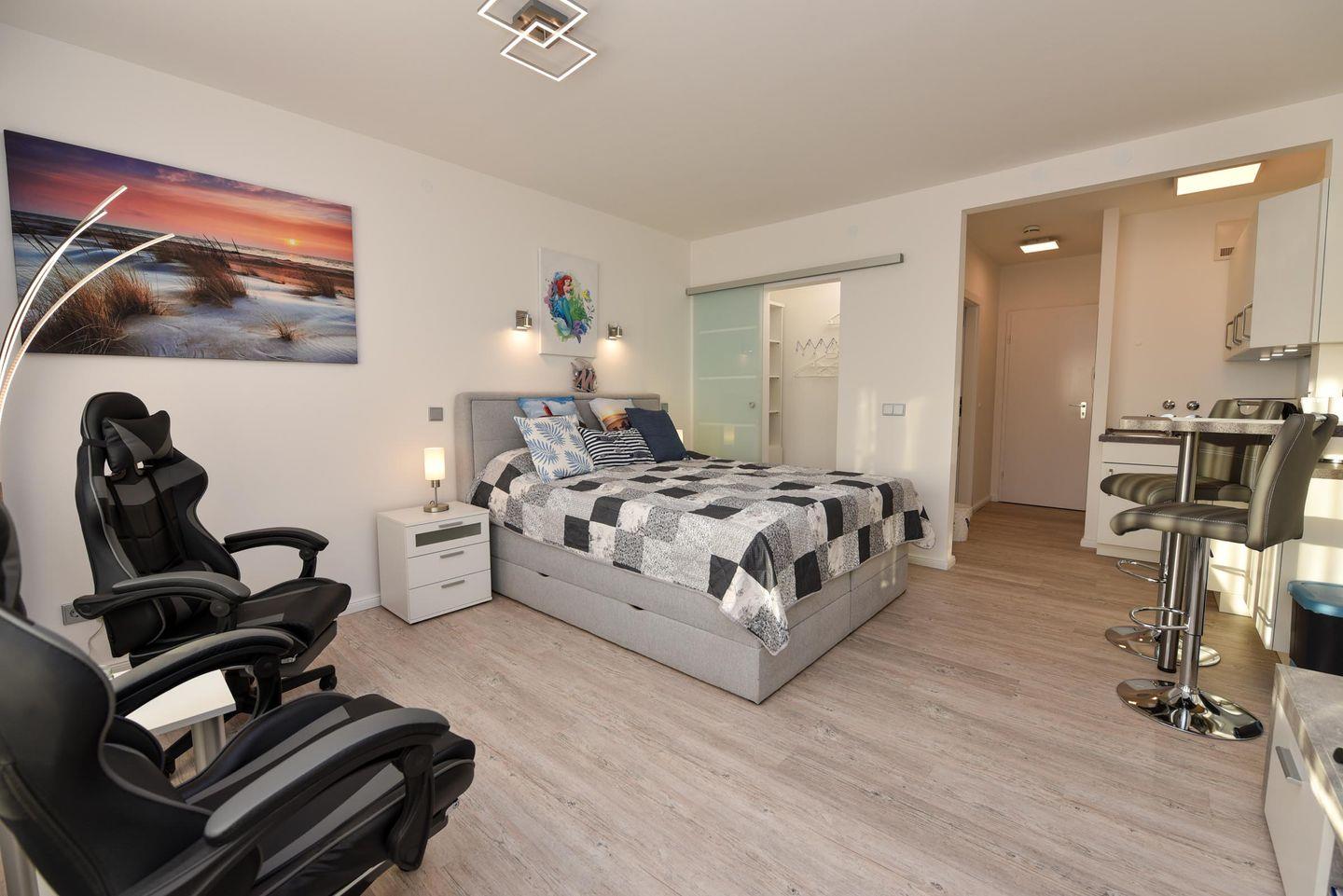 Renoviertes Sonnenappartement für 2 Personen. Das Appartement wurde 2022 komplett renoviert und von Grund auf neu eingerichtet. Im Schlaf- / Wohnbereich befindet sich ein komfortables Boxspringbett. Die kleine aber feine Pantryküche verfügt u.a. auch über eine Mikrowelle. 2 gemütliche Sessel laden zum Verweilen ein. Von hier aus können Sie ihre Blicke entweder in den Garten schweifen lassen, einen gemütlichen Fernsehabend verbringen oder ihre Urlaubslektüre geniessen.