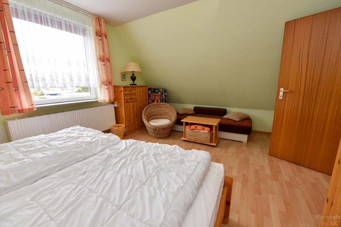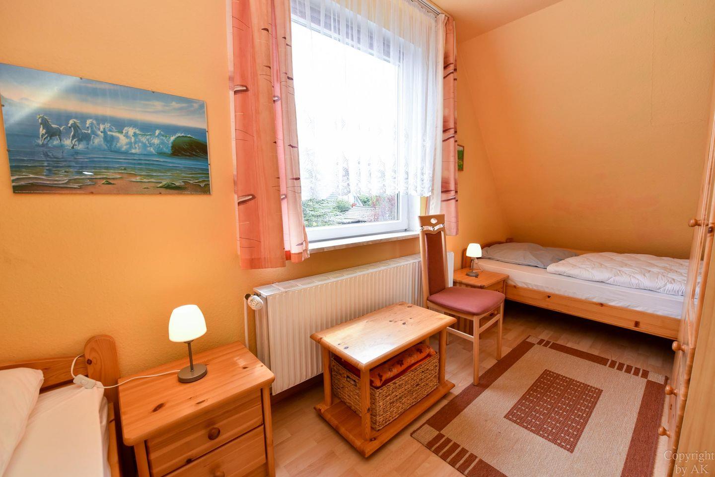 Die Unterkunft bietet auf ca. 60 qm Wohnfläche im Erdgeschoss einen einladenden Wohnbereich sowie einen Essbereich mit einer zum Wohnraum offenen und gut ausgestatteten Küche, die mit Mikrowelle, Geschirrspüler und Kühlschrank ausgestattet ist. Im Obergeschoss erwarten Sie das Elternschlafzimmer mit Doppelbett, das Kinderzimmer mit zwei Einzelbetten und das Badezimmer mit WC.