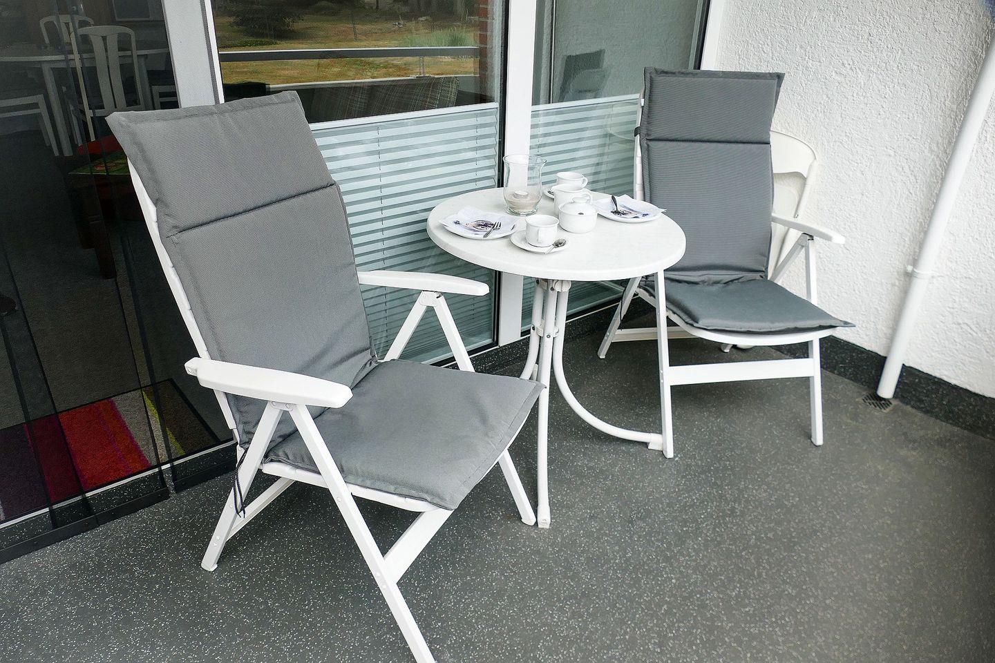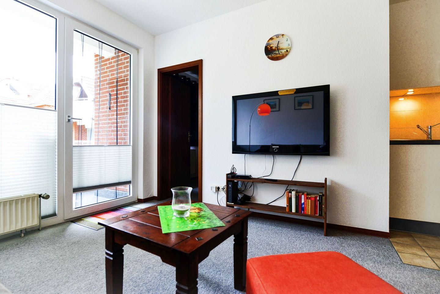 Gemütliche Hochparterre-Wohnung mit überdachtem Balkon, WLAN, Tiefgaragenstellplatz und Fahrradraum. Haustierfrei, Nichtraucher, voll ausgestattete Küche. Strandnah, ruhig, ideal für Familien und Senioren.