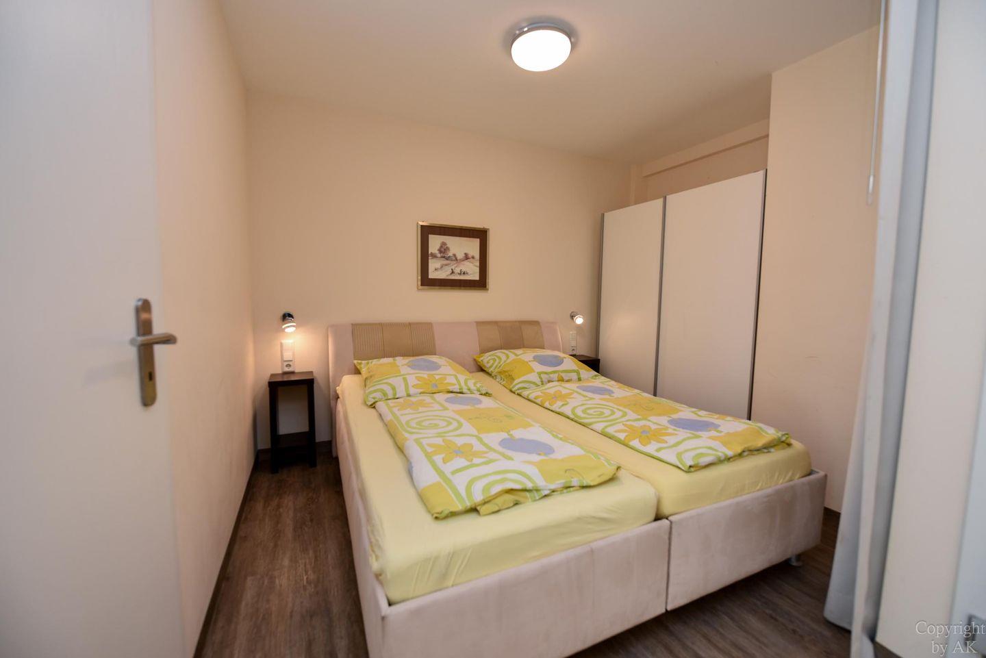 Für erholsamen Schlaf gibt es ein separates (Kinder-)Schlafzimmer mit zwei Einzelbetten sowie ein Doppelbett, das sich in einer Schlafnische im Wohnbereich befindet und durch einen Vorhang abgetrennt werden kann.
