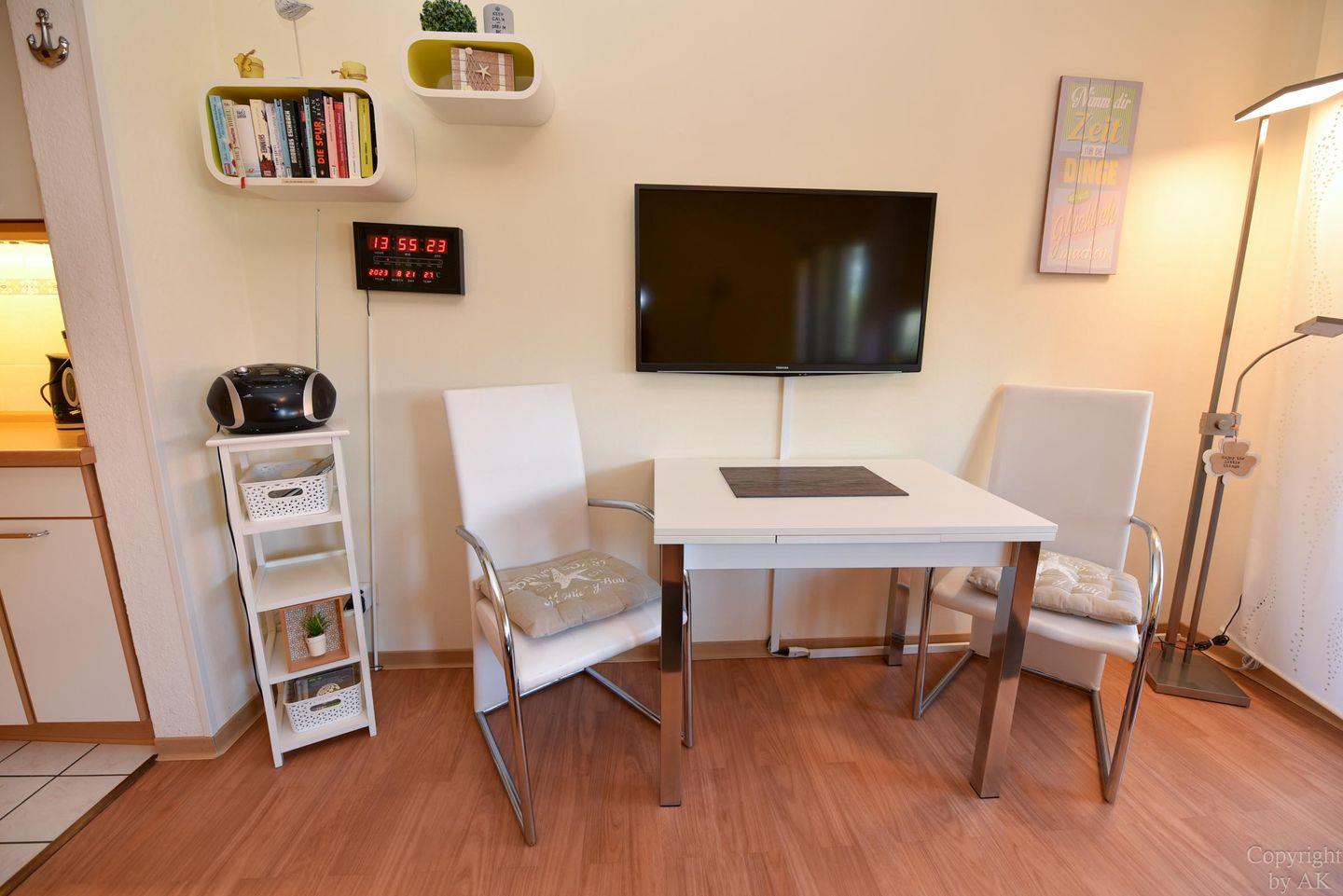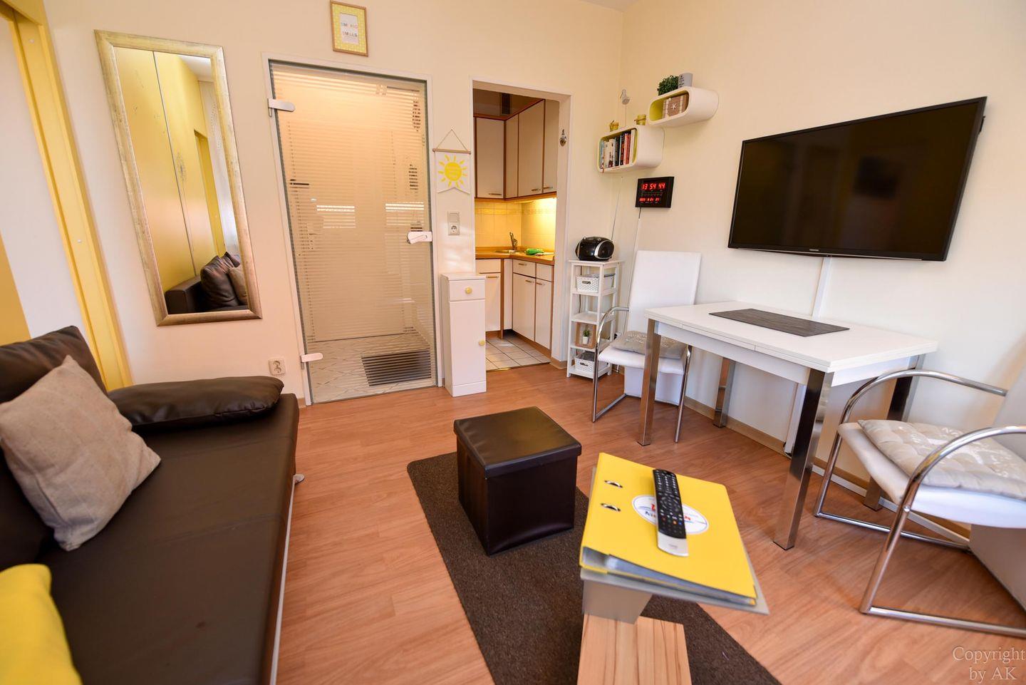 Die Ferienwohnung bietet Ihnen: Ein gemütliches Schlafzimmer mit einem komfortablen Doppelbett (180x200) und großzügigen Kleiderschränken. Einen Wohnraum mit einer bequemen Schlafcouch und einer lichtdurchfluteten Essecke. Ein modernes Badezimmer mit Dusche, das keine Wünsche offen lässt. Eine kleine, aber bestens ausgestattete Einbauküche, die zum Kochen einlädt. Eine große, beheizbare und verglaste Loggia mit Schiebefenstern und einer weiteren Sitzecke für entspannte Stunden. Unterhaltungsmöglichkeiten wie ein großer 3D-Flachbildfernseher, eine Musikanlage, eine Urlauberbibliothek und verschiedene Spiele.