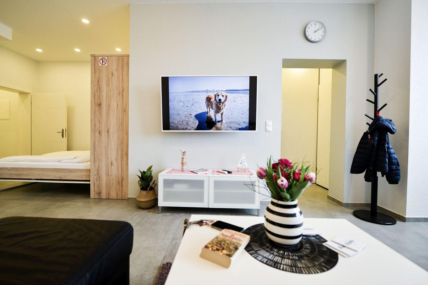 Eine kostenlose Garage für Ihr Auto und ein zweiter Eingang erleichtern Ihre Anreise und bringen Sie entspannt in die im Erdgeschoss gelegene Ferienwohnung. Auch Ihr vierbeiniger Begleiter ist in dieser wunderbaren Ferienwohnung herzlich willkommen!