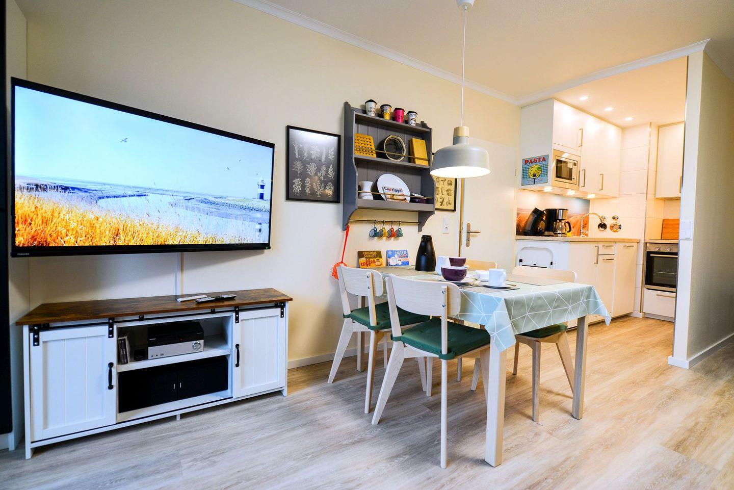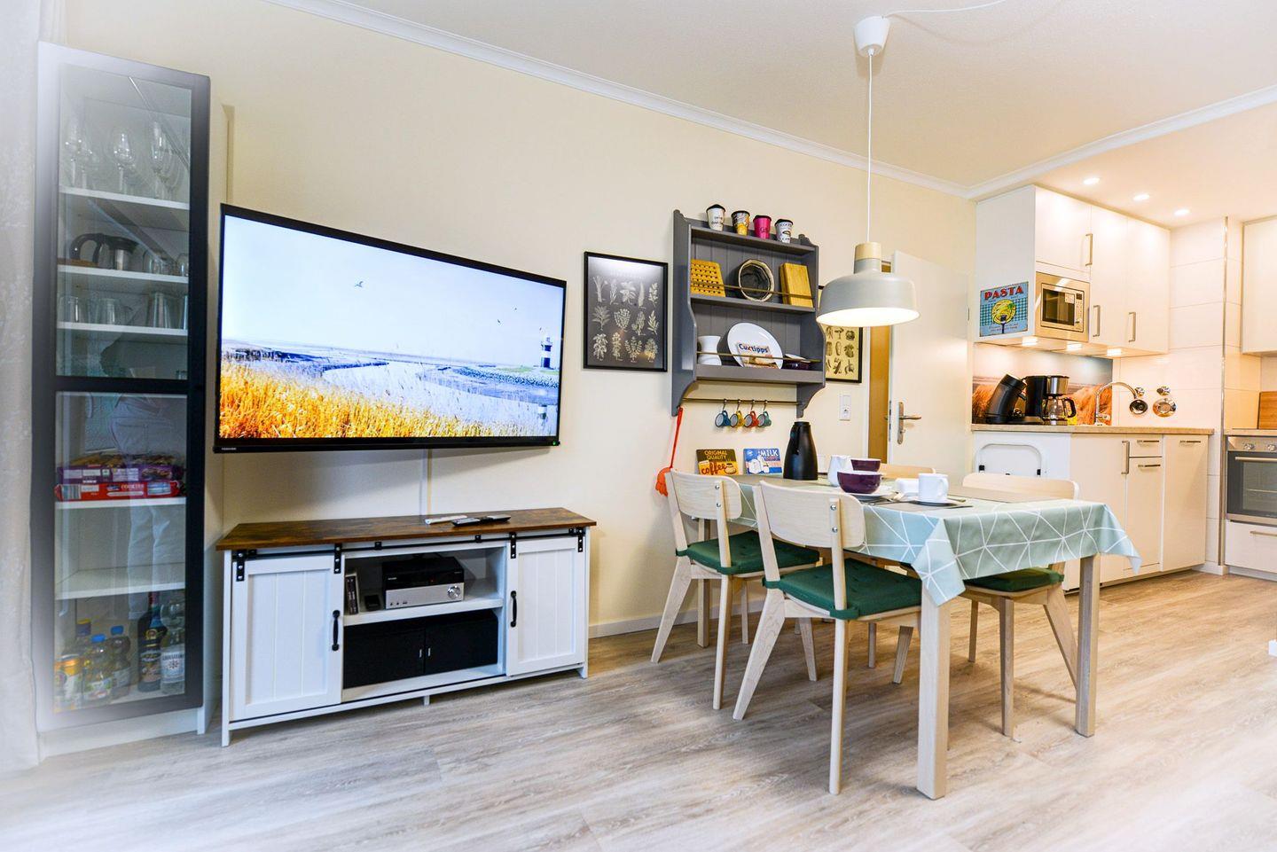 Zwei Flatscreen-TVs und kostenfreies WLAN garantieren gemütliche Abende vor dem Fernseher, um sich nach einem langen Tag am Strand zu entspannen und einfach die Seele baumeln zu lassen.